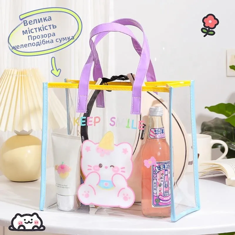 β‘Quick viewLarge Capaci Transparent PVC Beach Bag Women's Handheld Cosmetic Storage Bag Travel Dry Wet Separation Fruit Jelly Bag303.78 UAHHot