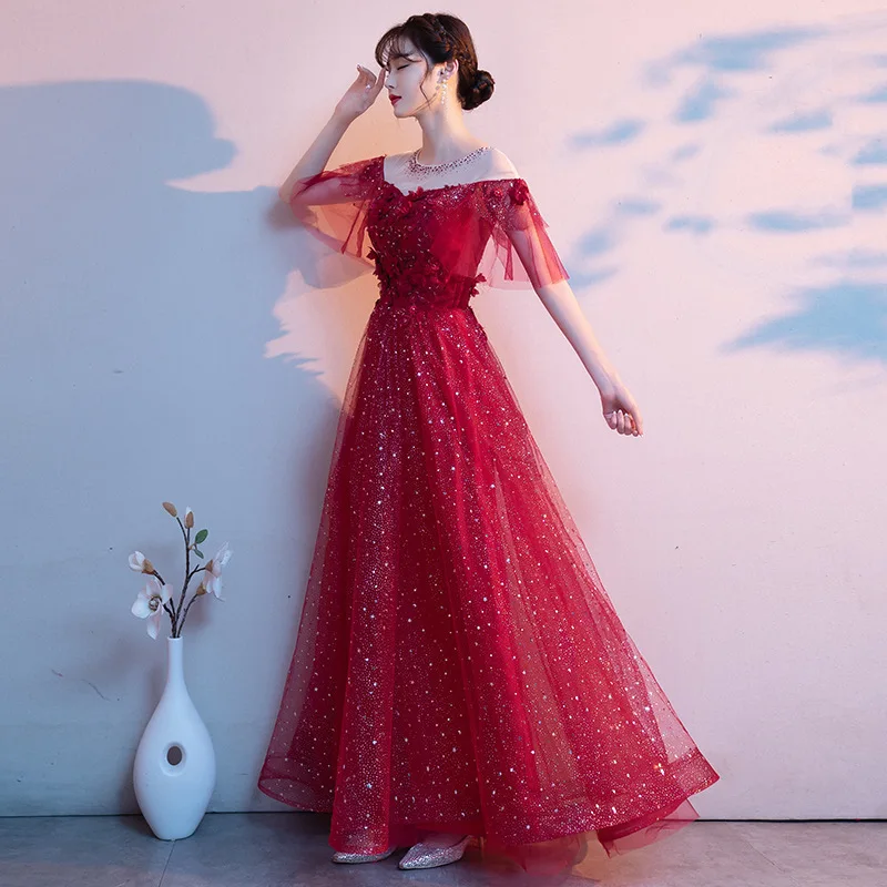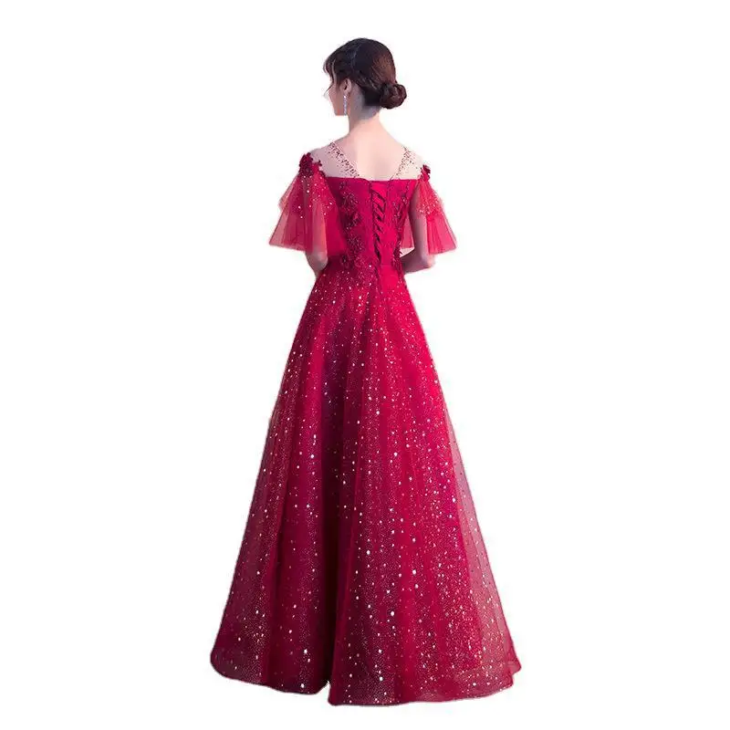 β‘Quick view2026 New Women's Wine Red Embroidered Decal Evening Dress Fashionable Slimming Banquet Art Exam Stage Grand Display Dress3094.46 UAHHot