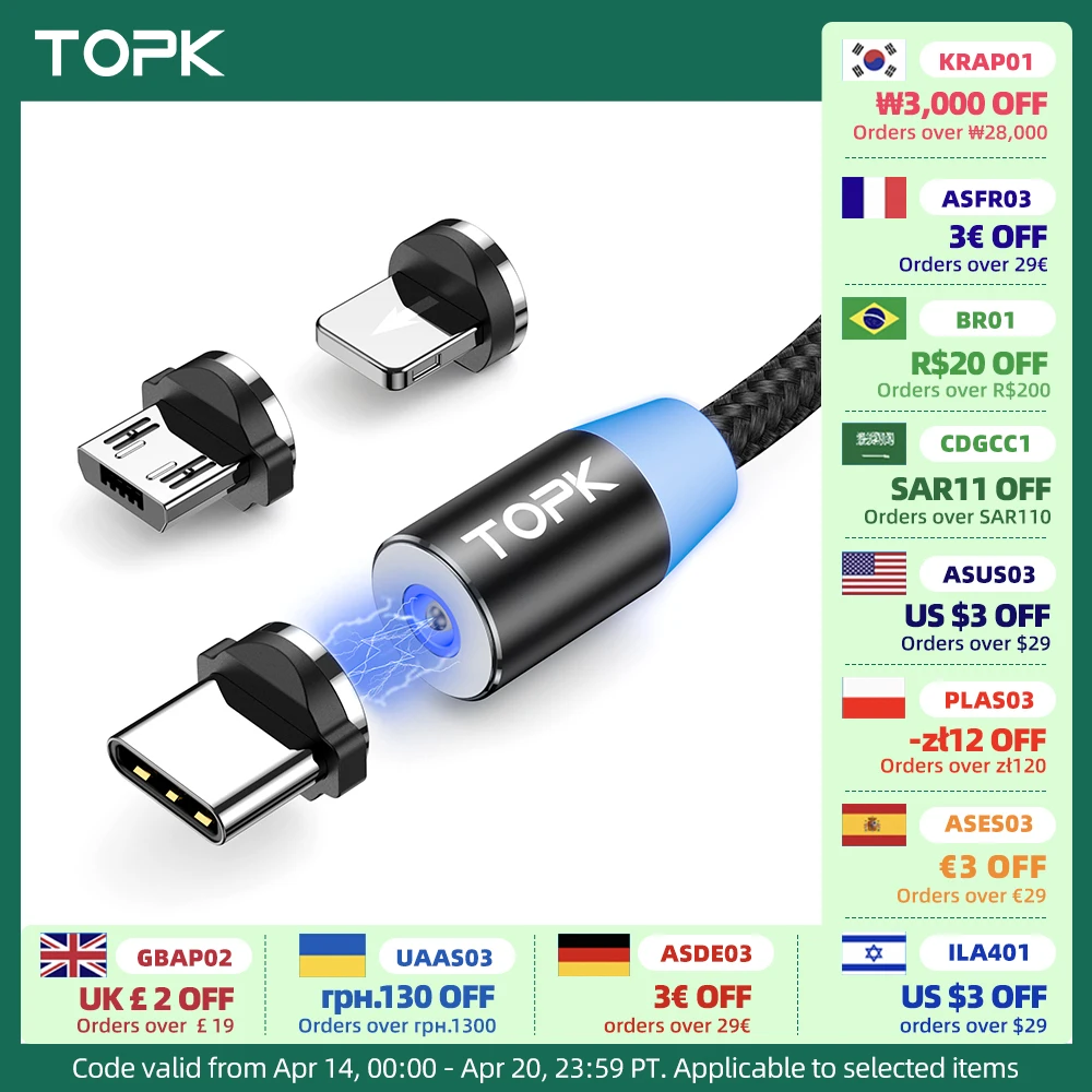 ↑Magnetic Charging Cable 3 IN 1 TOPK 360 Degree Rotating Magnetic Phone Charger Cable Nylon Braided Magnetic Micro USB C Cable - TopDealBox
