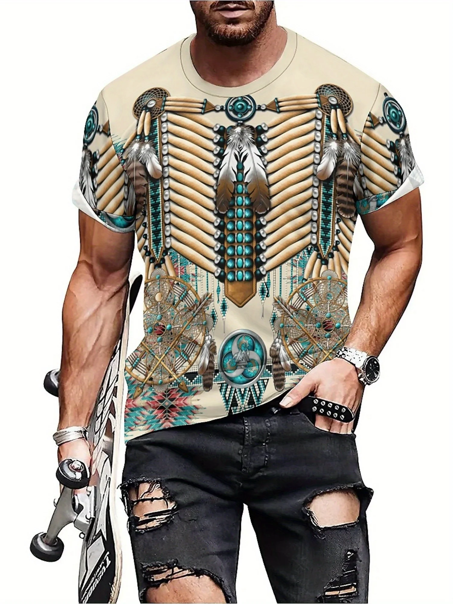 β‘Quick viewSummer Men'S 3D Print Short Sleeve T-Shirt - Vintage Design with Cultural Elements, Loose Fit, Soft & Breathable Fabric225.72 UAHHot