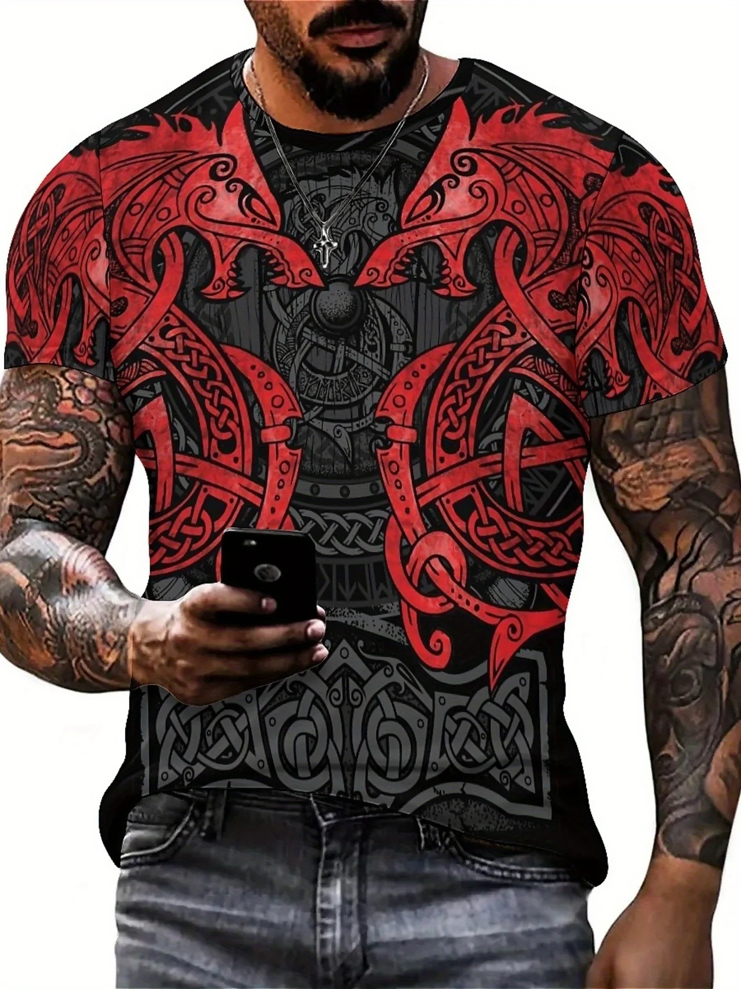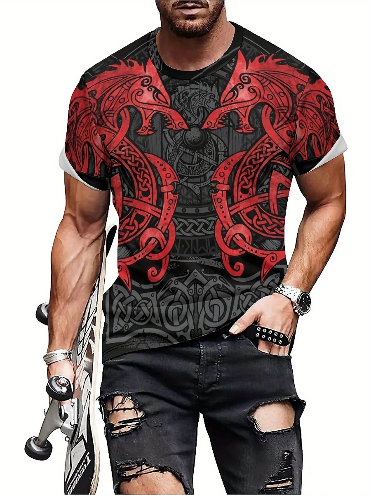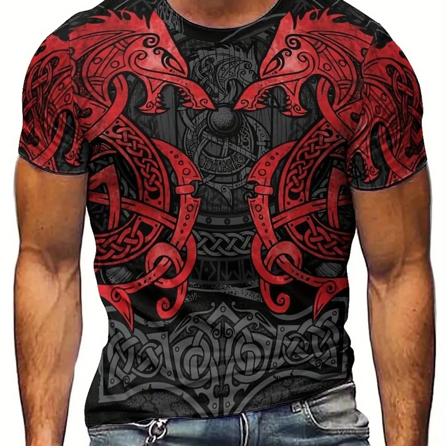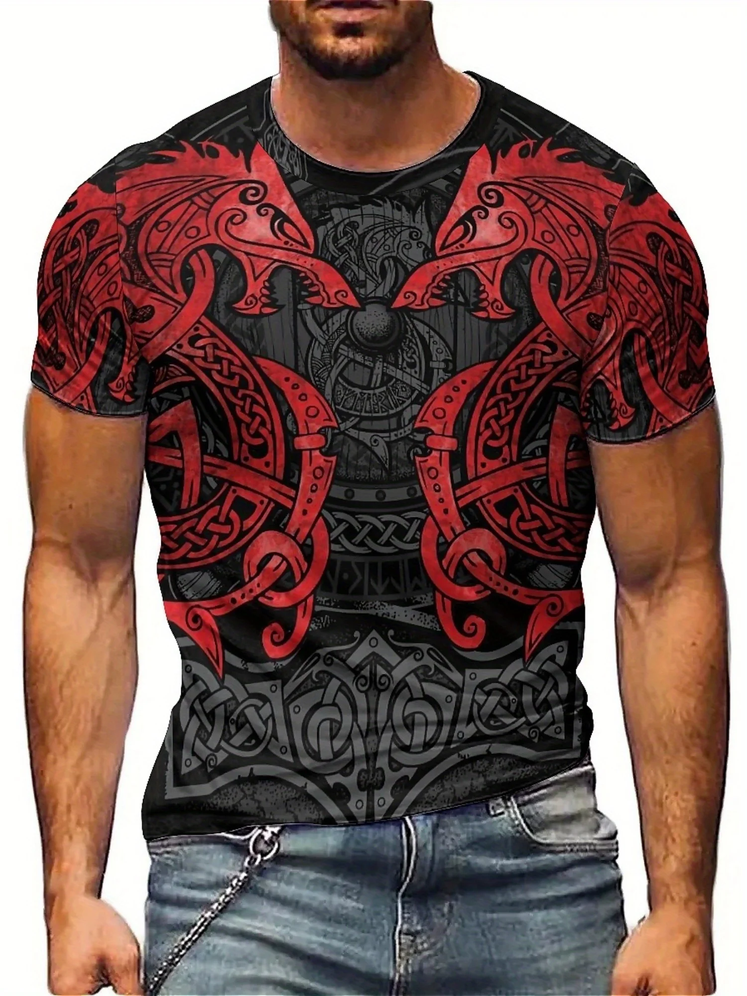 β‘Quick viewPlus Size Men's 3D Viking Pattern Graphic Tee - Stylish & Comfortable Polyester Short Sleeve Crew Neck T-Shirt for Gym, Running225.72 UAHHot