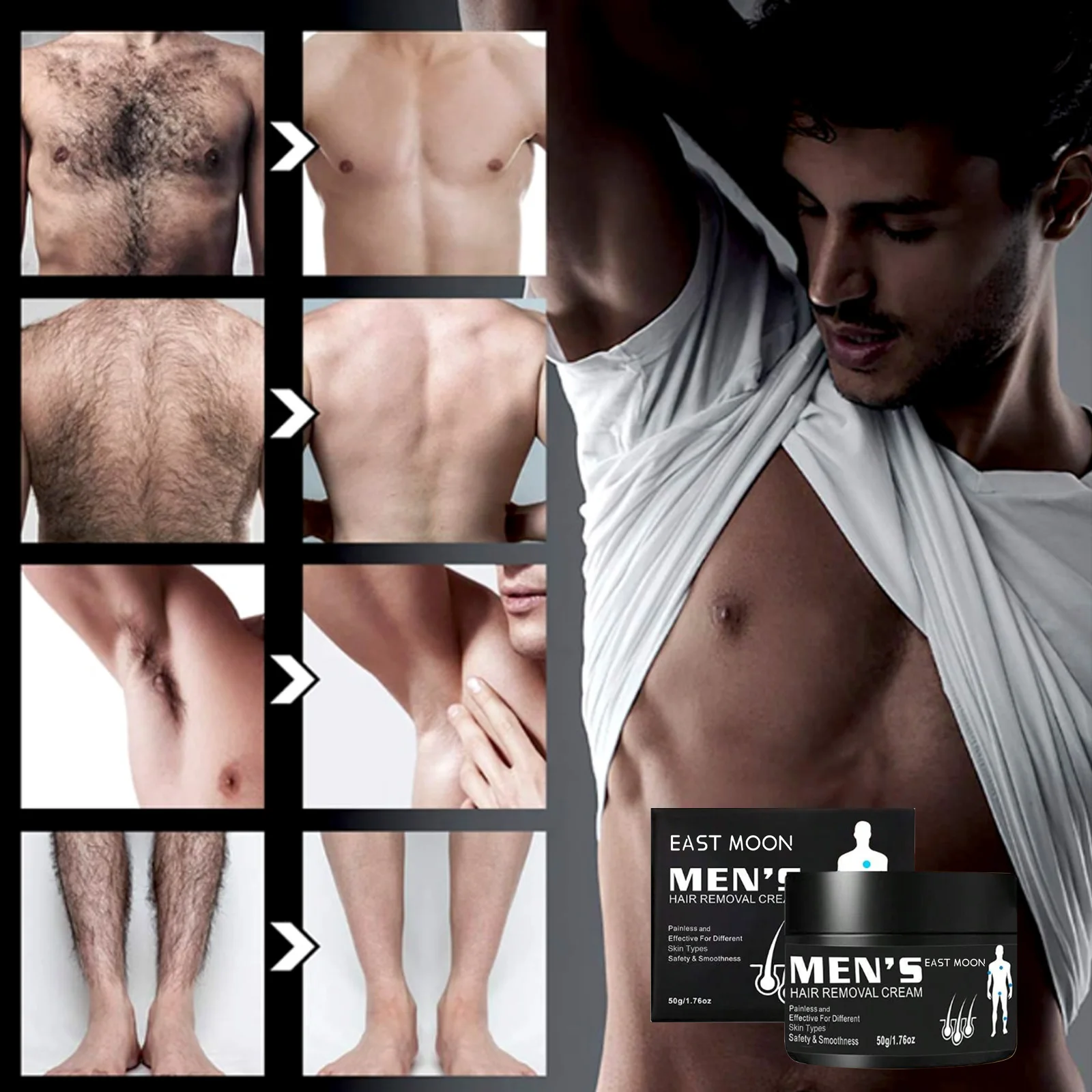 ↑Men's Aloe Hair Removal Cream Nourishing Painless Non Irritating Growth Inhibitor Smooth Portable Body Hair Removal Lotion - TopDealBox