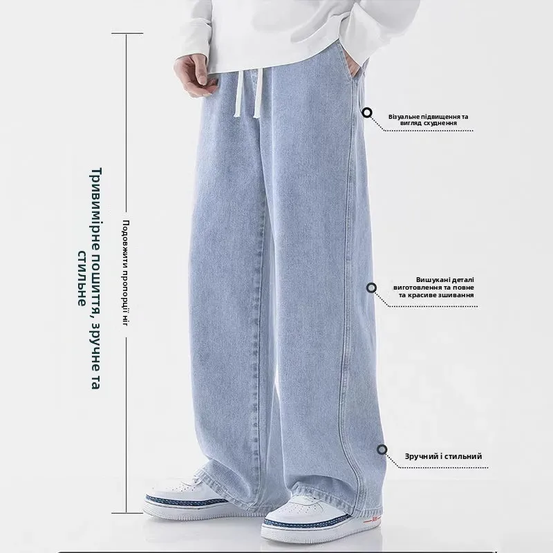β‘Quick viewLight Wash Men's Drawstring Jeans Loose Straight Leg Floor-Length Trendy Casual Wide Leg Long Trousers Comfortable Fit683.63 UAHHotβ β β β β β 4.9