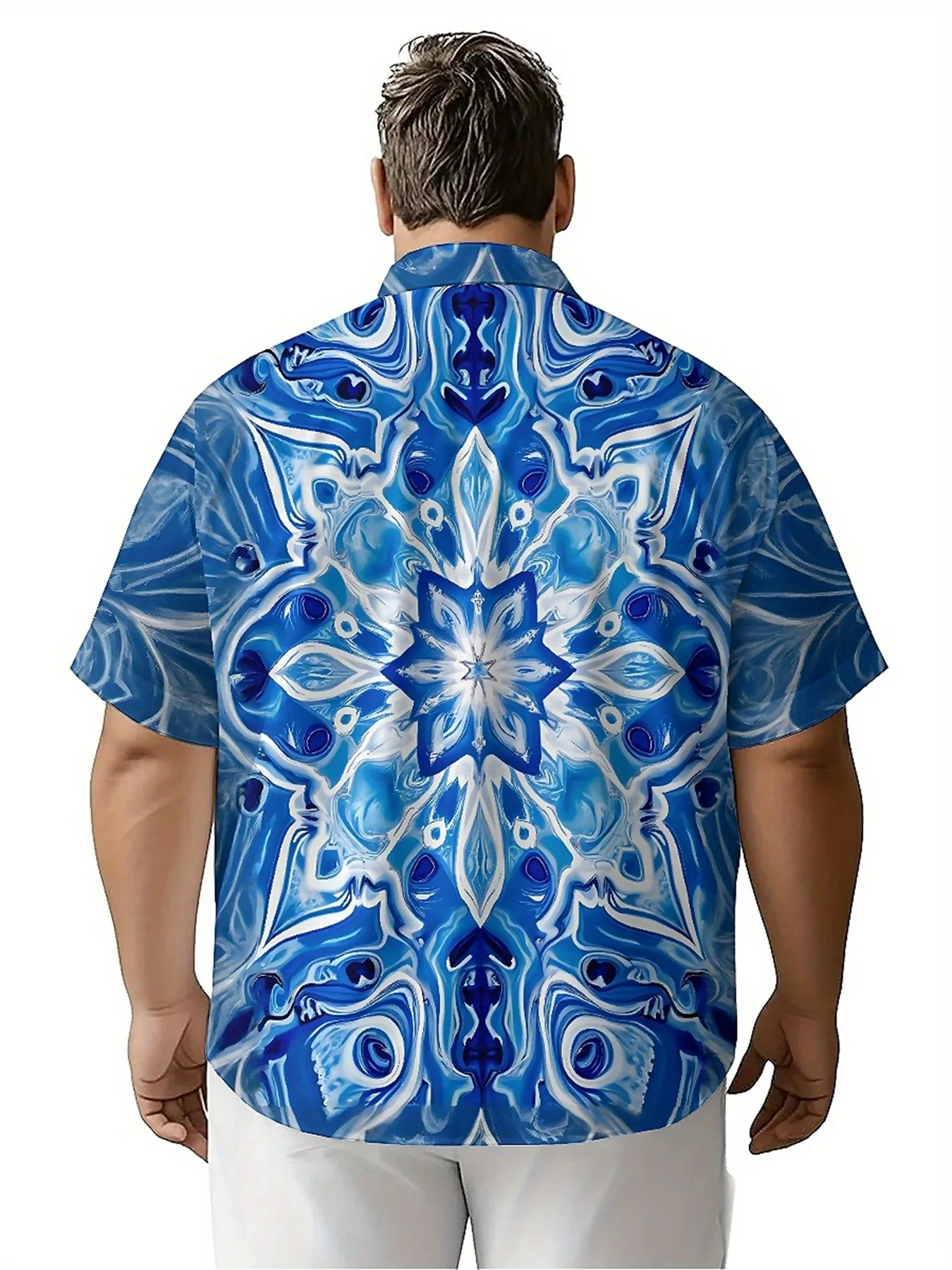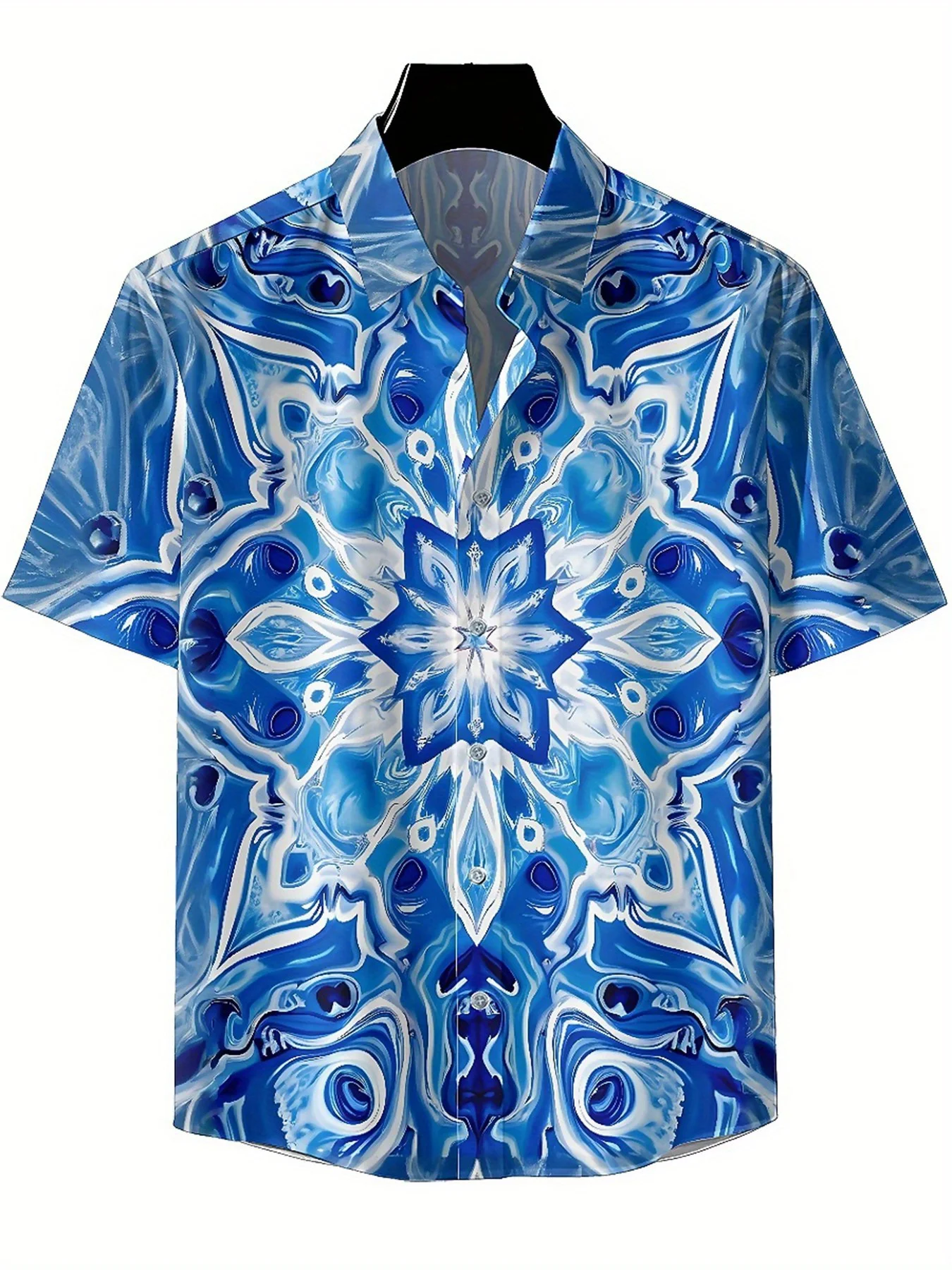 ↑Men's Plus Size Hawaiian Shirts Dream Blue Geometry Pattern, Unisex Aloha Shirts,New in Summer Tops Tee,streetwear - TopDealBox