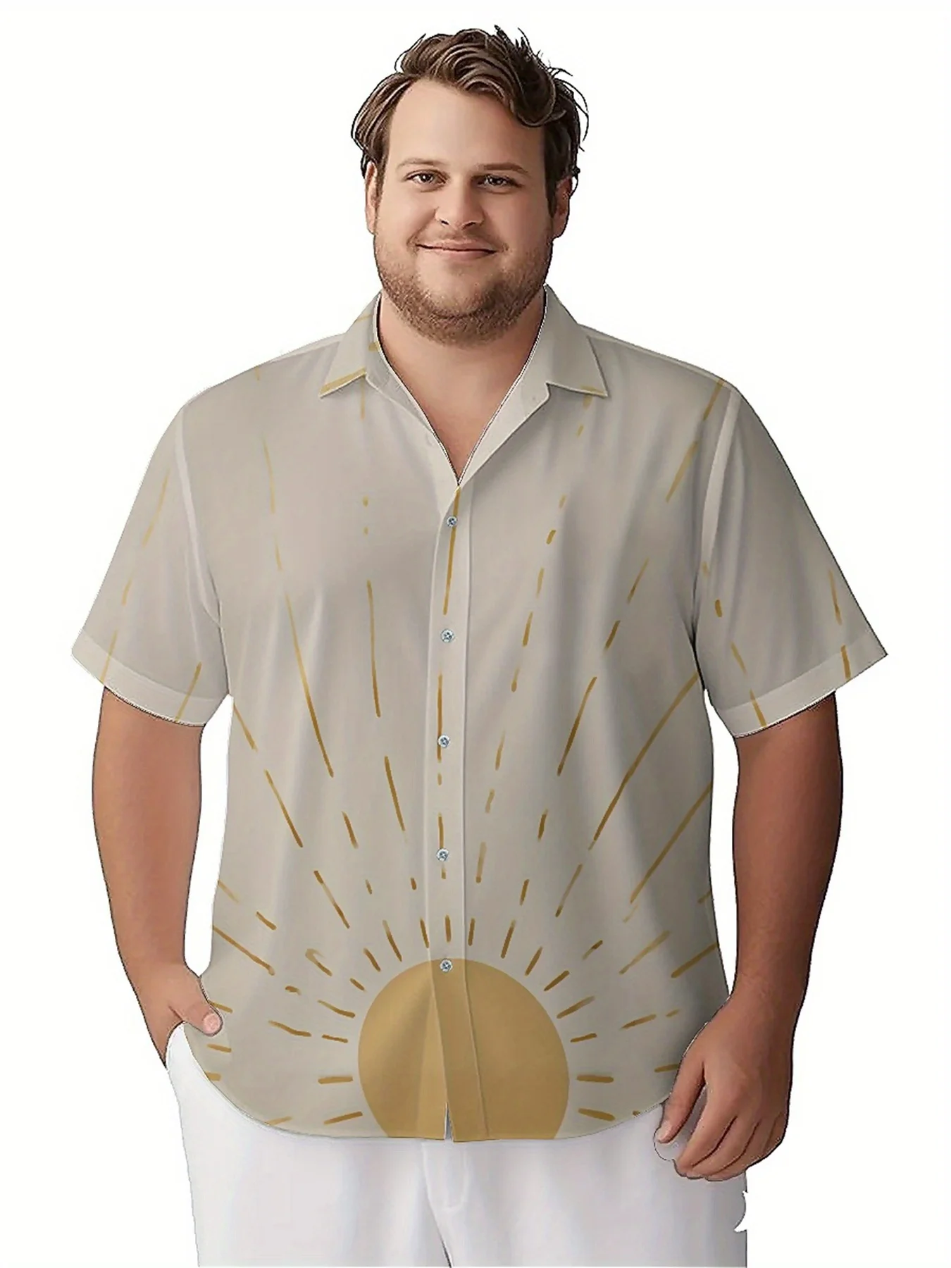 ↑Men's Plus Size Hawaiian Shirts Sunshine Pattern, Button Up Shirts, Unisex Casual Clothing, Summer Tops - TopDealBox