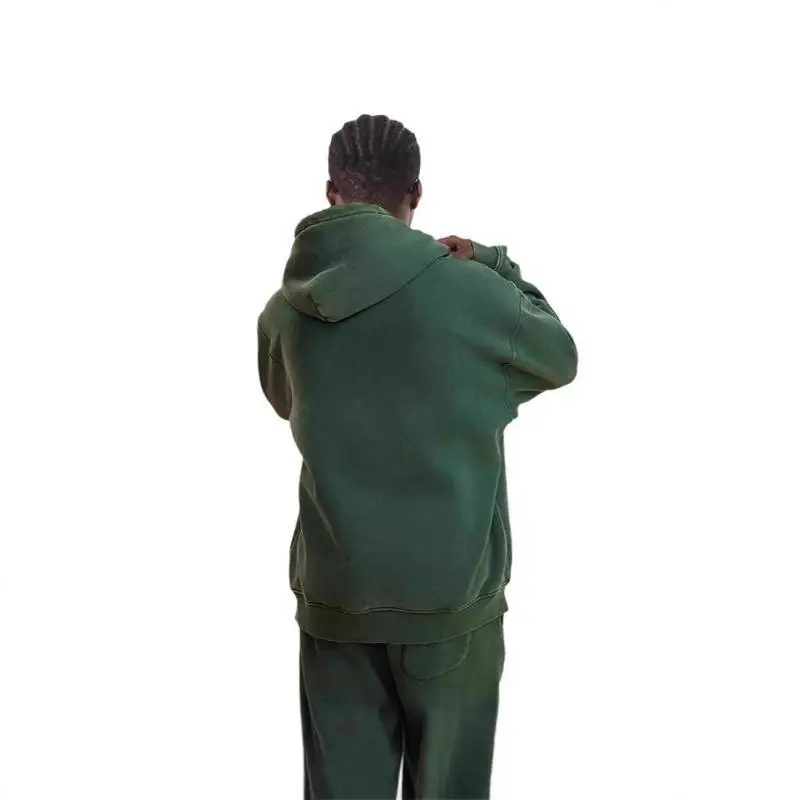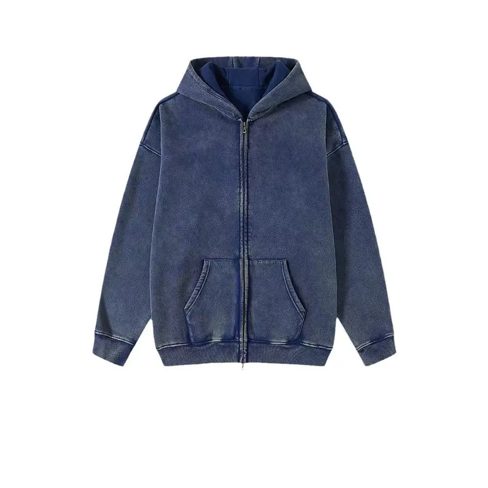 ↑Men's Velvet Zipper Jacket Trendy High Street Heavy Hat Hoodie Printed LOGO Washed Distressed 460G Thickened Versatile Unisex - TopDealBox
