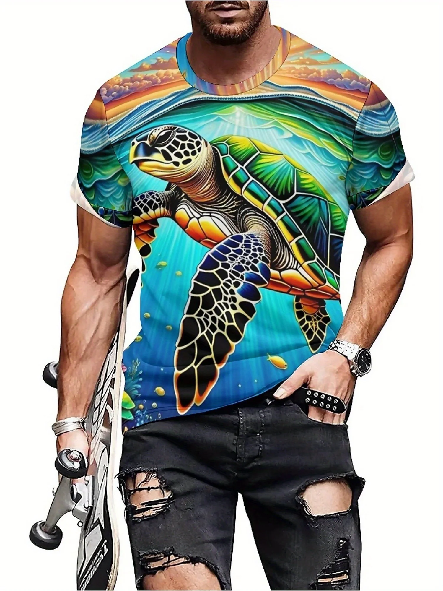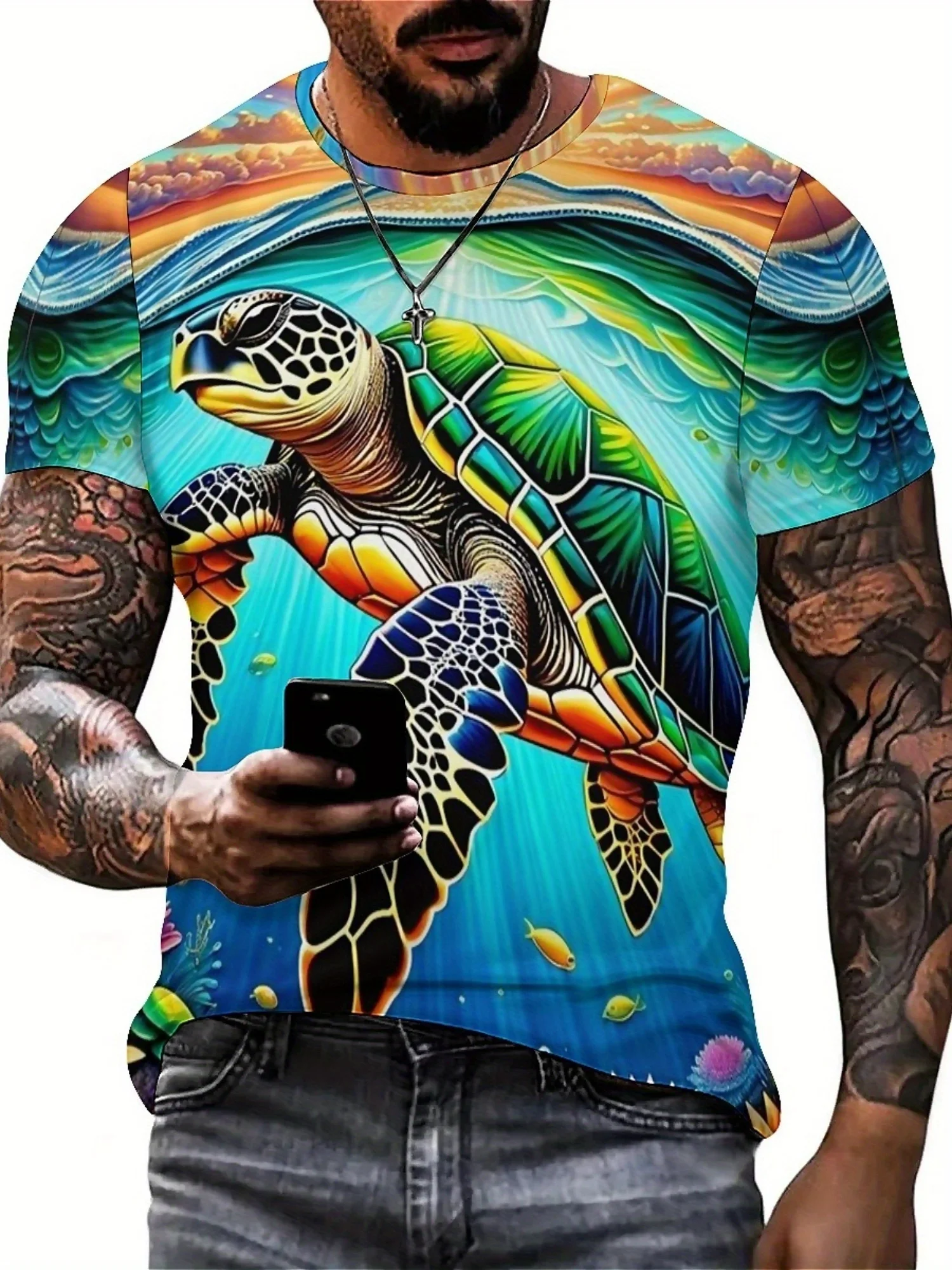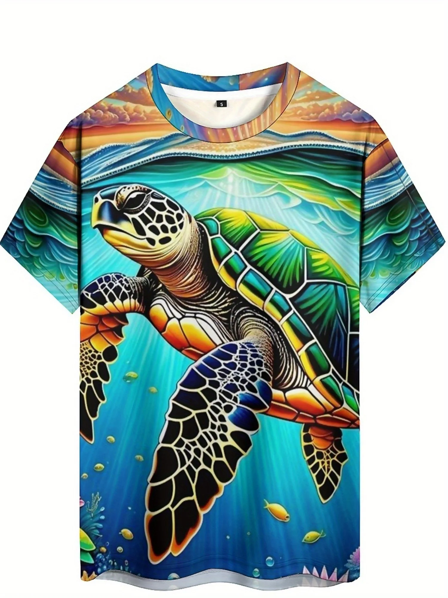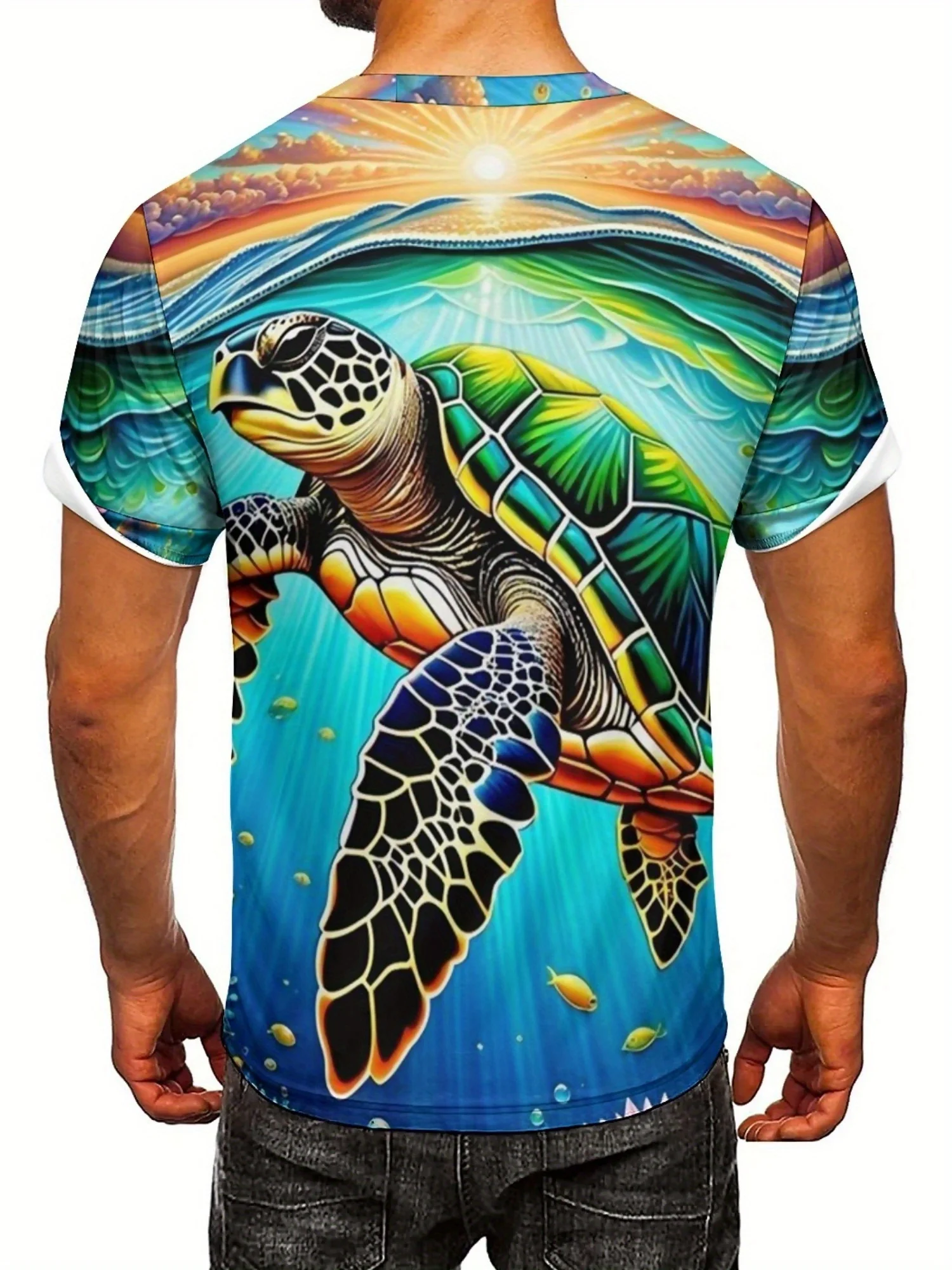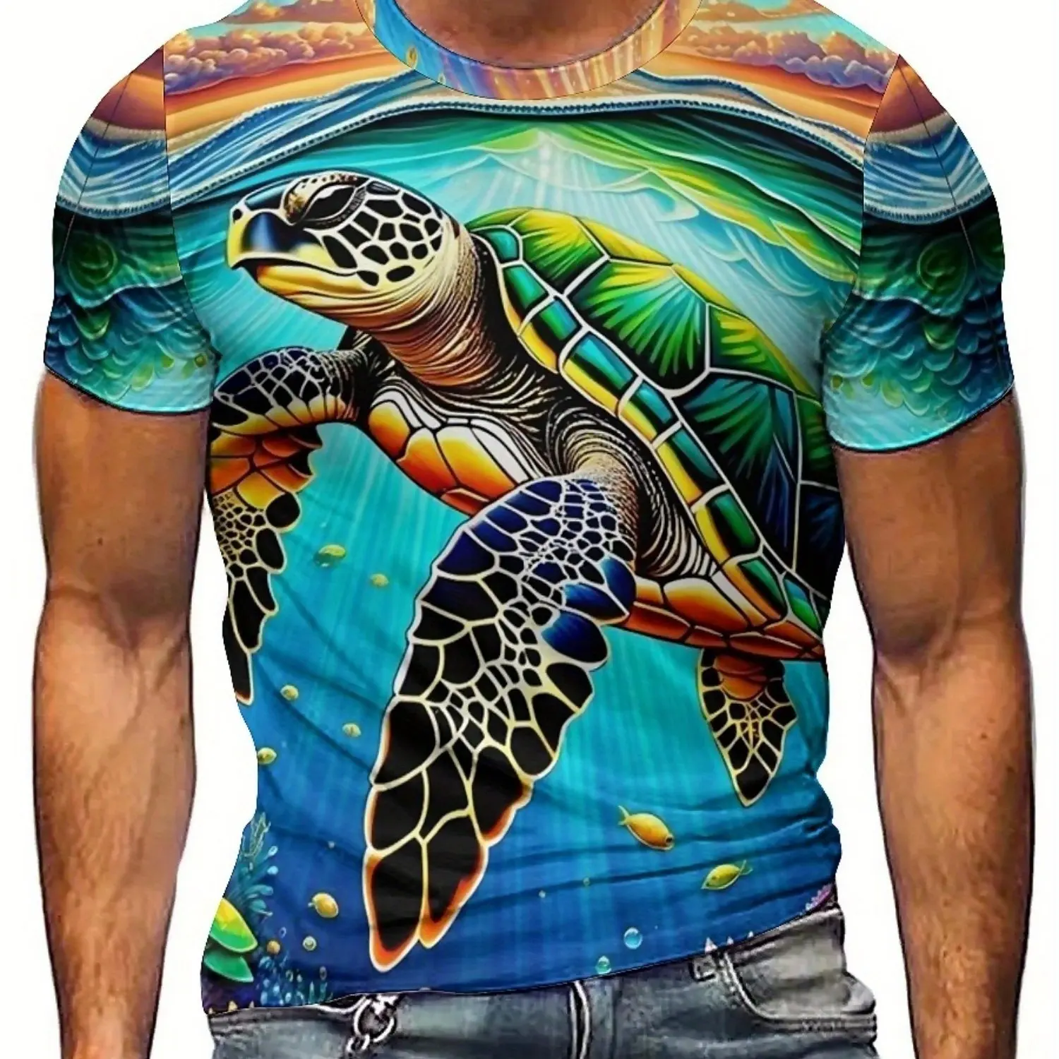 ↑Men's & Women's 3D Printed Turtle Graphic T-Shirt - Soft Polyester Fabric, Vibrant Geometric Design, Regular Fit Short Sleeve - TopDealBox