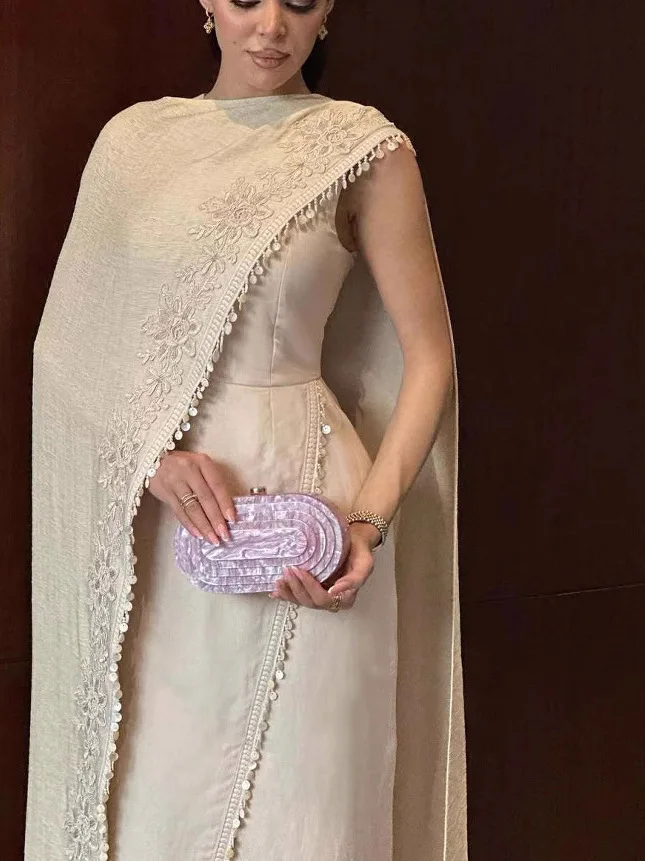 ↑Middle East Traditional Women's Dr Robe Two-Piece Set Spring Summer 2025 Svel Floor-Length Gown Polyester Fiber - TopDealBox