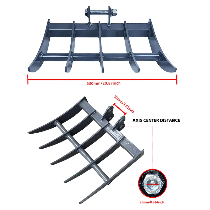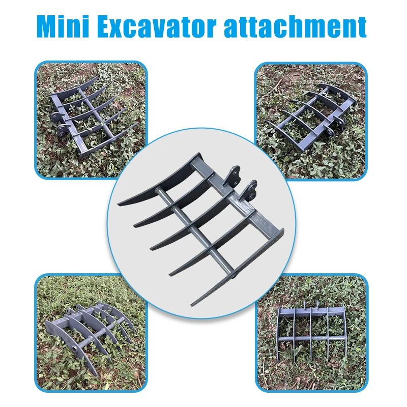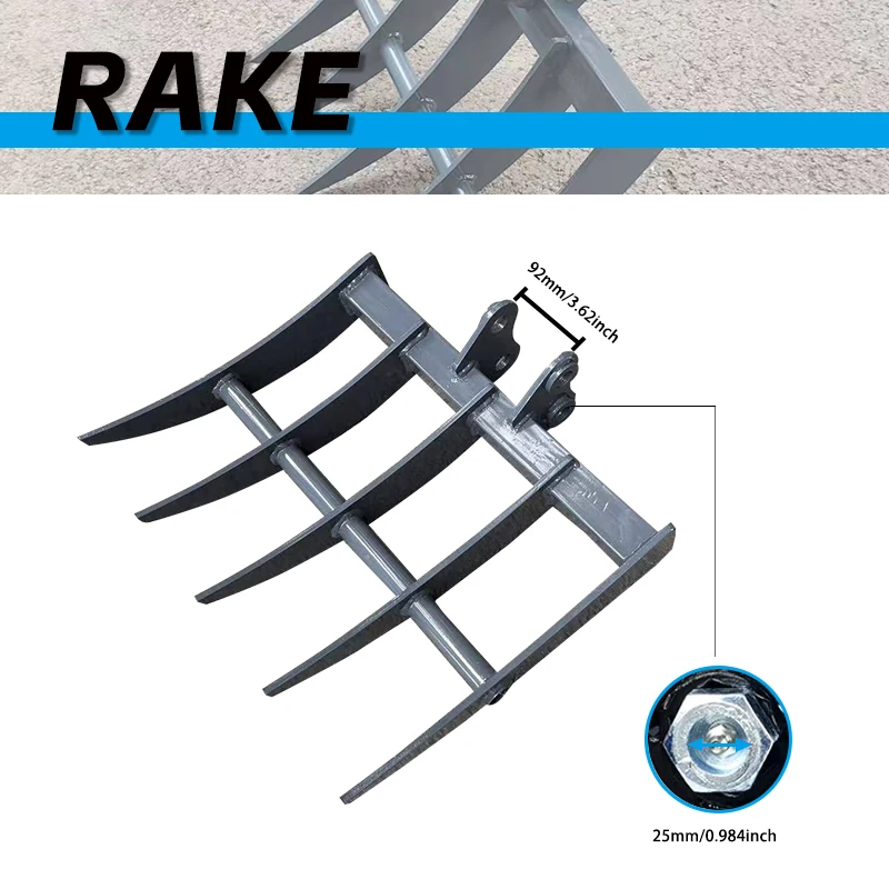 ↑Mini Excavator Rake Small Excavator Attachments Rake Five-tooth Rake Steel Rake Suitable For 0.8-3 Ton Excavators For Family - TopDealBox