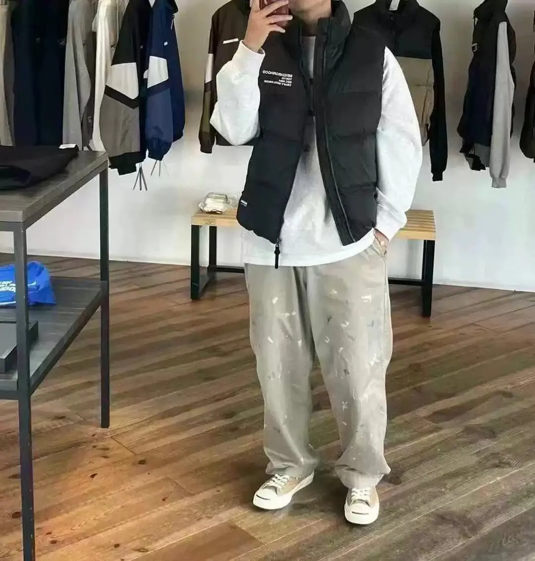 ↑NBHD CLASSIC MIDDLE THI down VEST Jaet Youth Trendy Du down Vest Patchwork Color Vest for Young Men Autumn Zipper - TopDealBox
