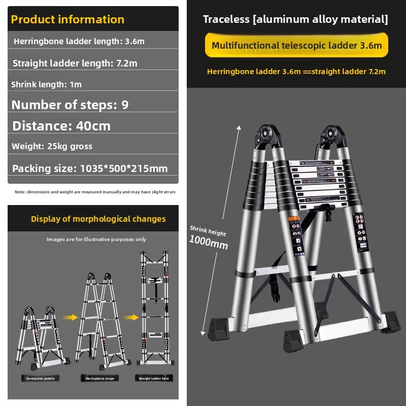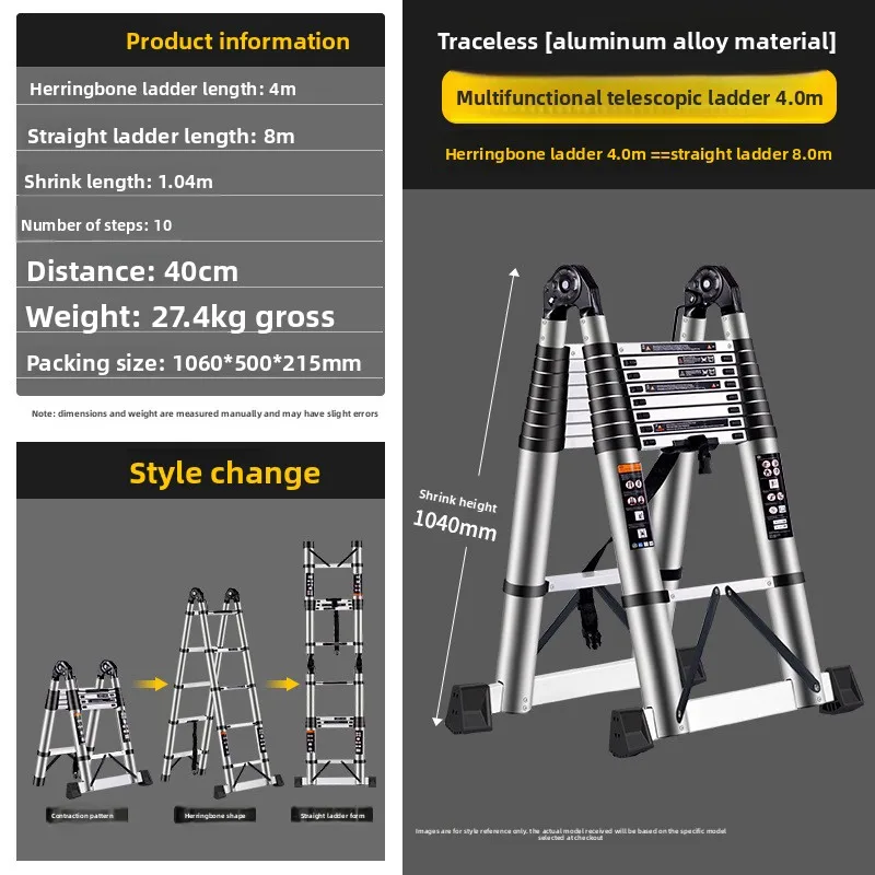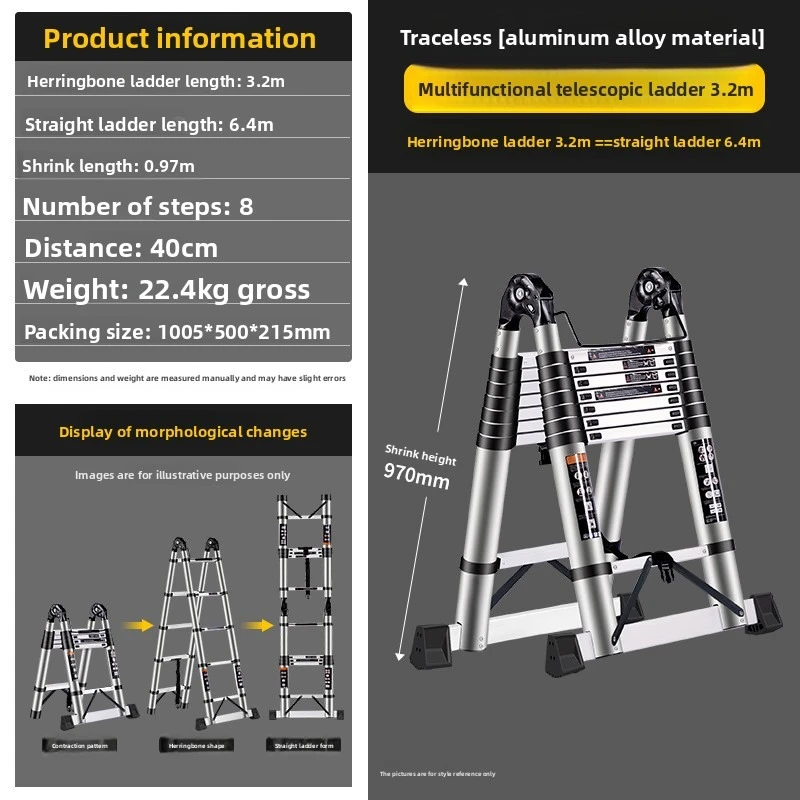 β‘Quick viewStainless steel telescopic ladder, zigzag ladder, portable folding ladder, elevator, household engineering ladder, bamboo ladder7185.04 UAHHot