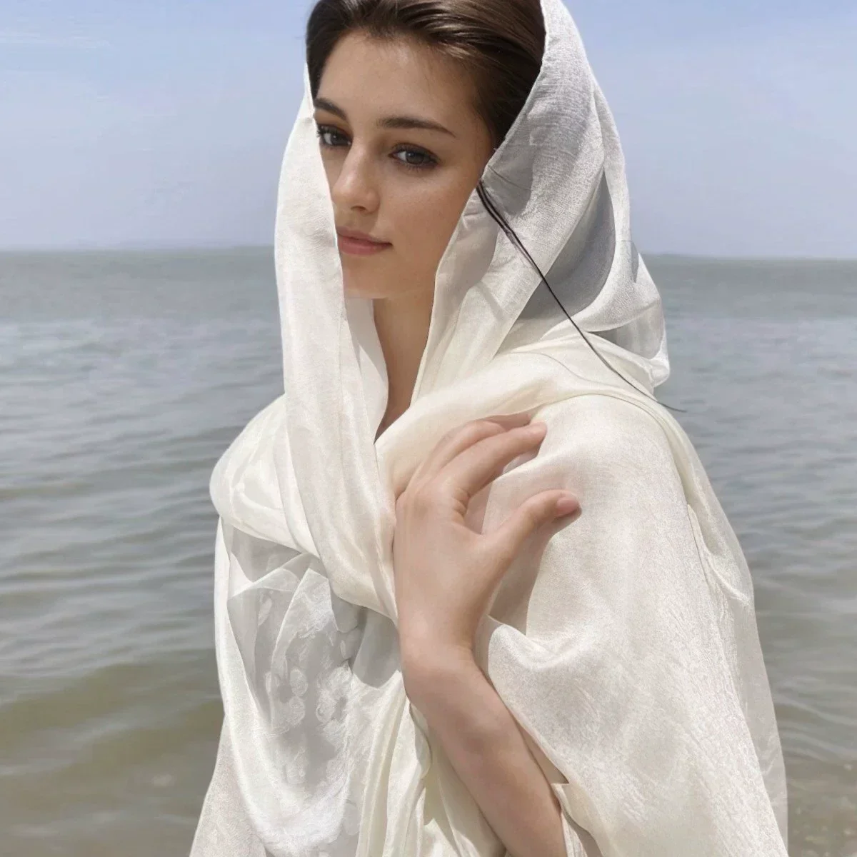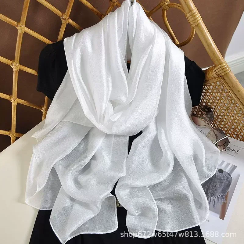 ↑New Pearl Glow Linen Women Scarf Long Length Sun Protection Beach Shawl Cotton Linen Solid Color Wrap Silk Scarf Female - TopDealBox
