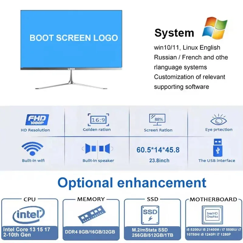 OEM All-in-One Desktop Computers 23.8inch 8GB RAM 256GB SSD Core i5 I3 CPU full Desktop Computer All in one PC - TopDealBox