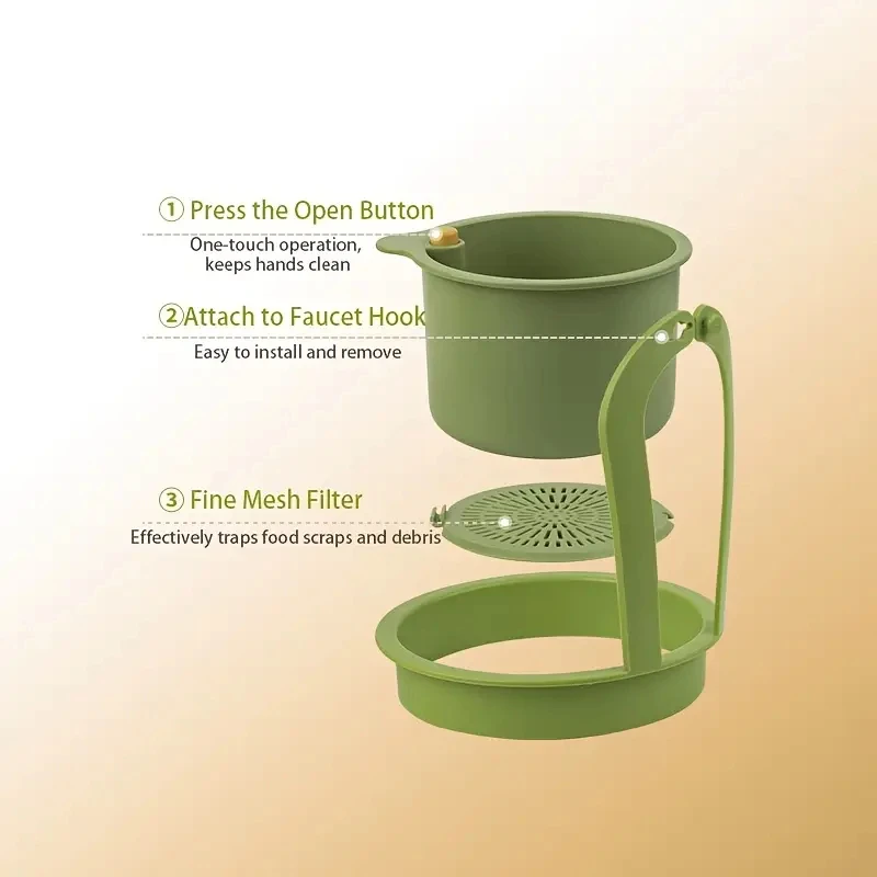↑One-Touch Press Drain Basket, Removable Sink Strainer, Kitchen Bathroom Filter Holder for Food Residue Sponge Soap Storage - TopDealBox