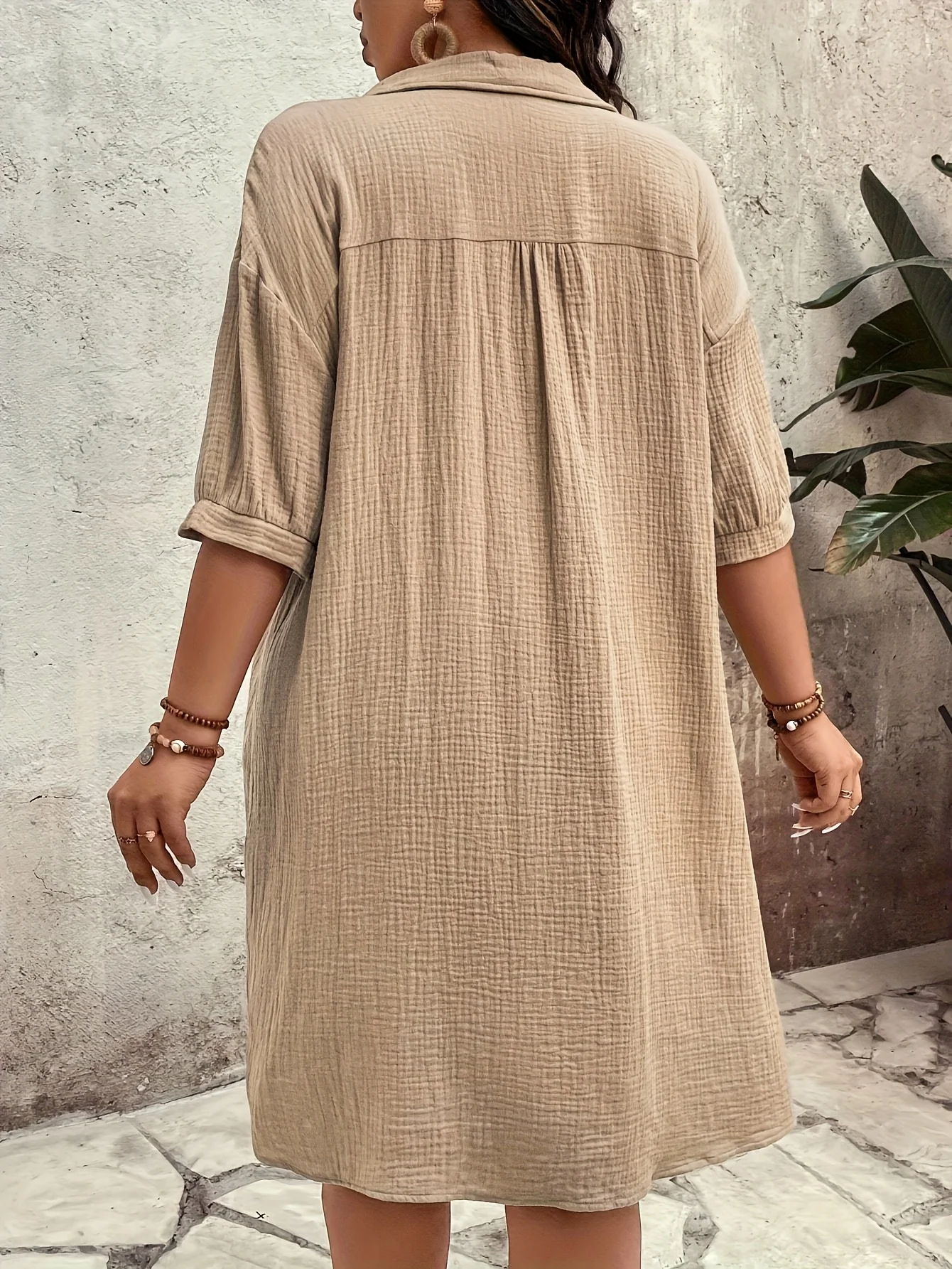 ↑plus Size Casual Loose Women's Shirt Dress with Button-Up Collar Short Sleeve Commute Straight Cut Outdoor Dress - TopDealBox