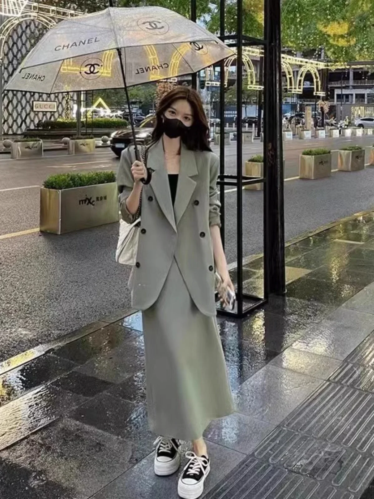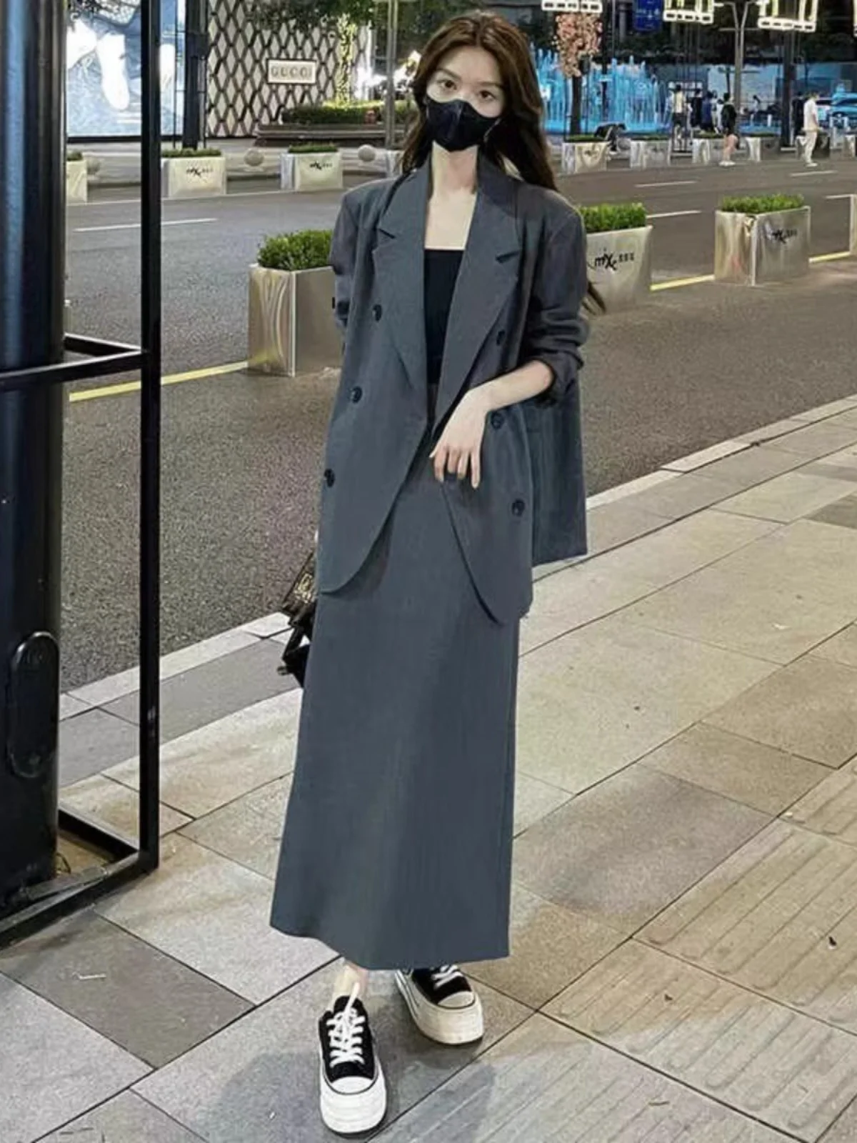 ↑plus Size Faionable Suit Set Women's Spring Autumn New Profional Slimming Midi Skirt Two Piece Set Trendy High Waist A-L... - TopDealBox