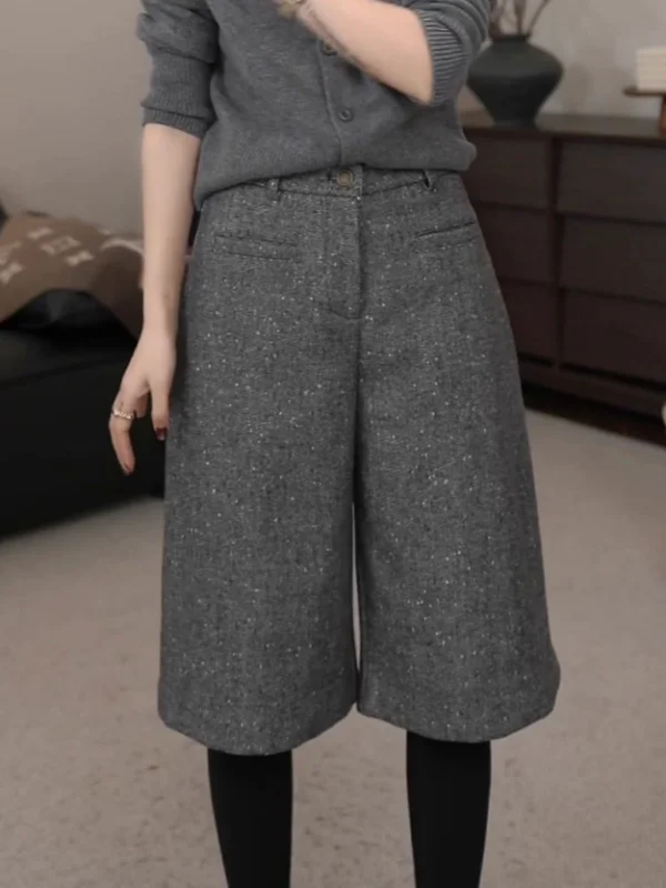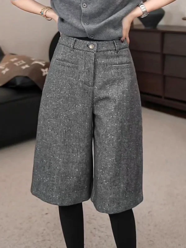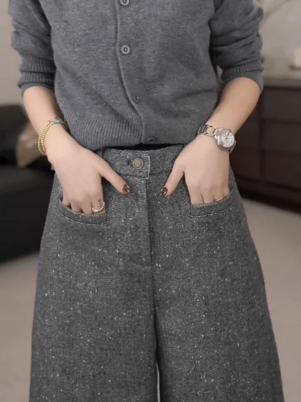 ↑plus Size Women's ey Snowflake Patterned 7/8 Length Wide Leg Pants Autumn Winter Faionable Slimming High Waist Trousers - TopDealBox
