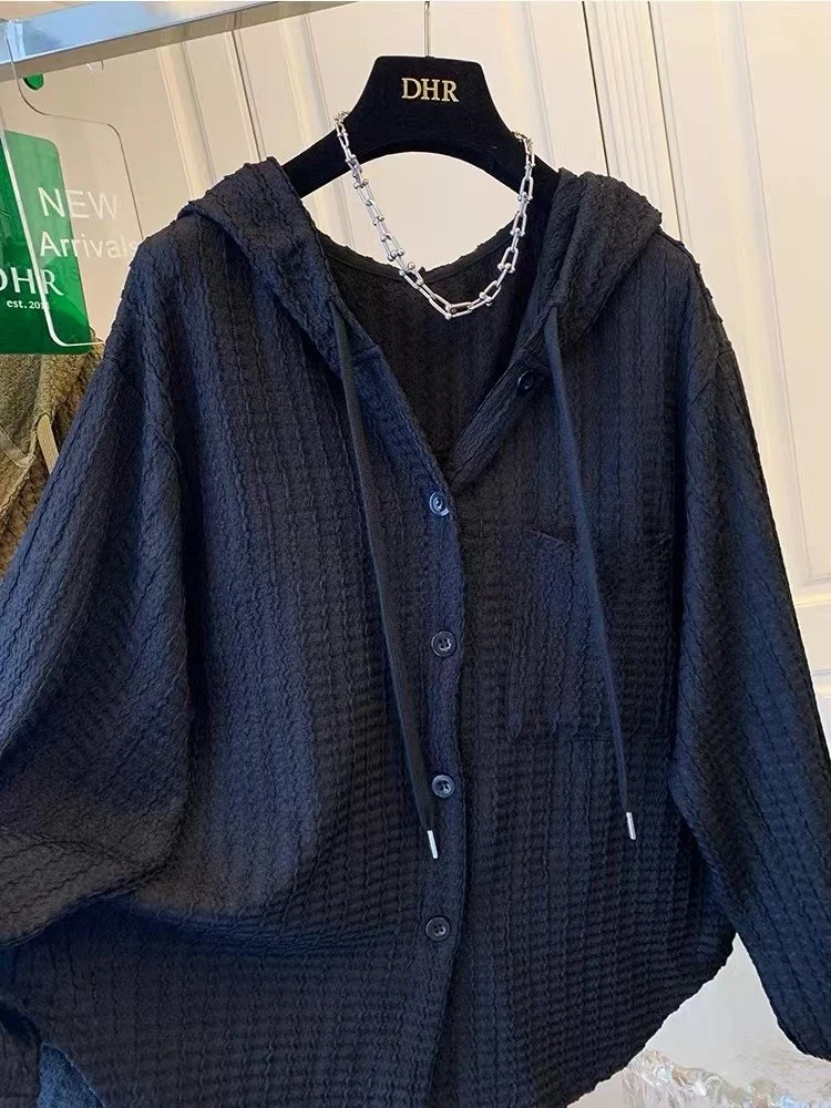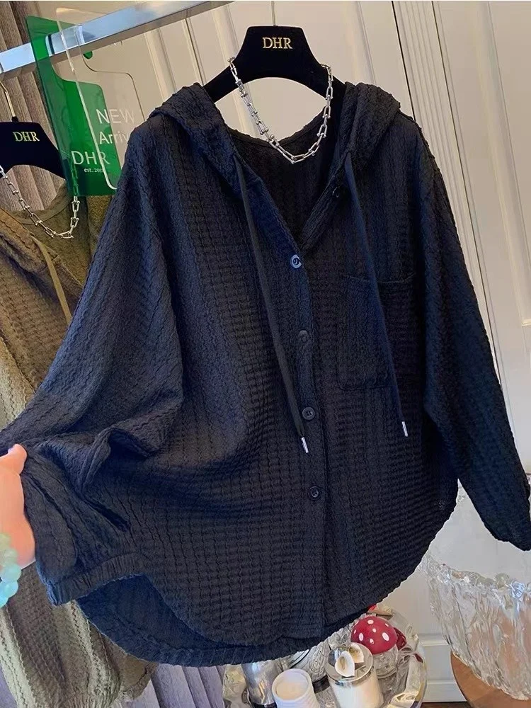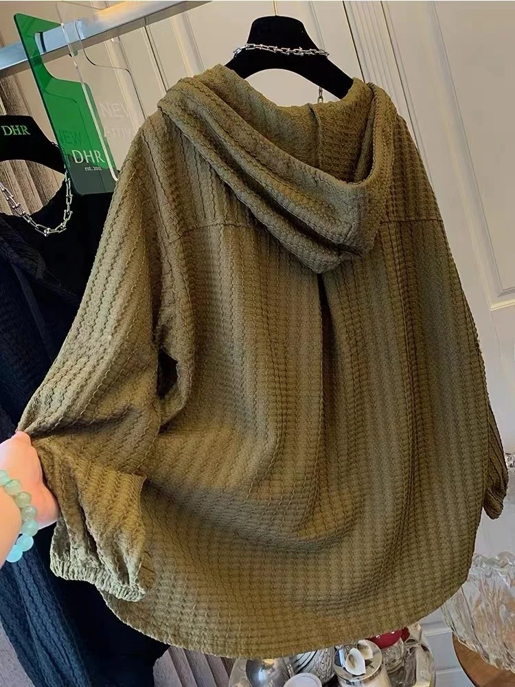 ↑plus Size Women's Hooded irt Spring Autumn New Loose Slimming Sun Protection Outerwear T-irt Comfortable Casual Long Sve - TopDealBox