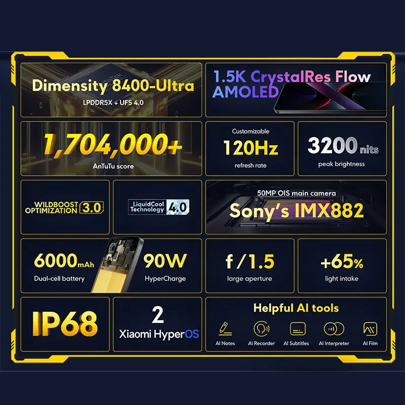 POCO X7 Pro Global Version Smartphone Dimensity 8400-Ultra HyperCharge 6000mAh 90W NFC 6.67" AMOLED display - TopDealBox
