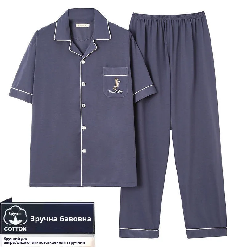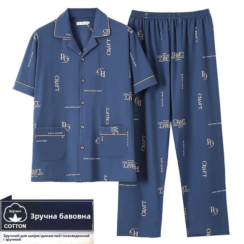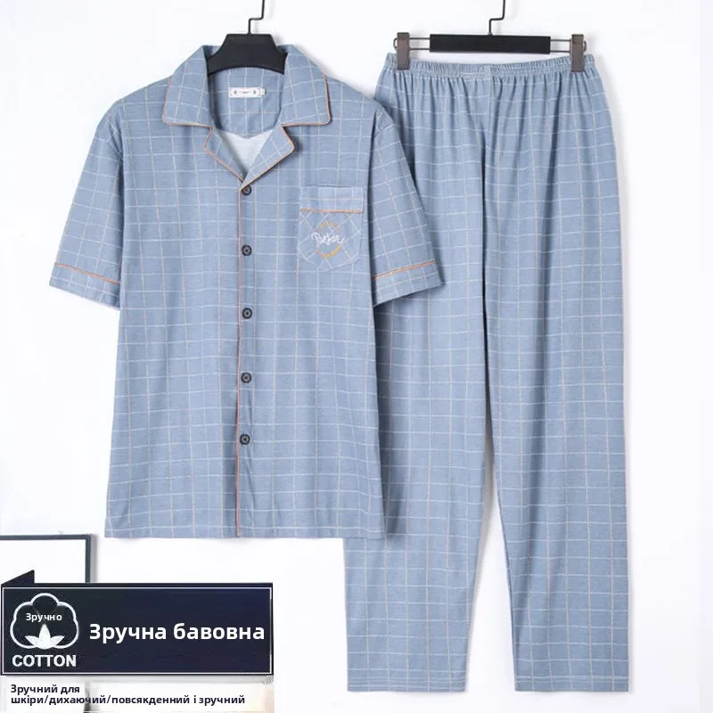 ↑Pure Cotton Summer Spwear Men's Loose Fit ort Sve Thin Home Clothes Set Comfortable Breathable Dad's Summer Pyjamas - TopDealBox