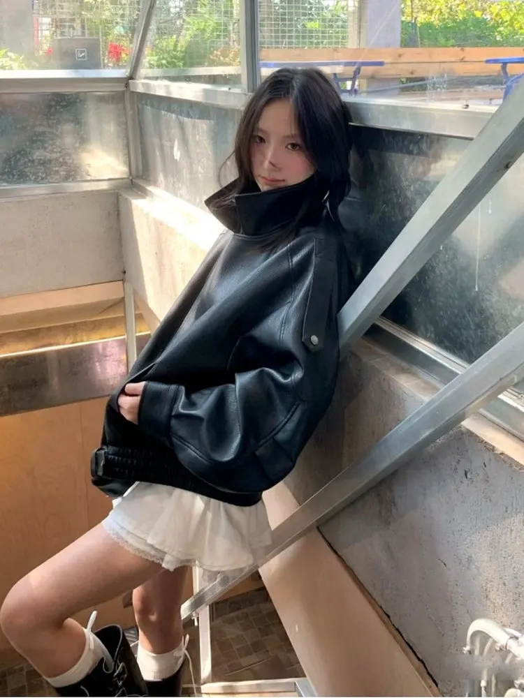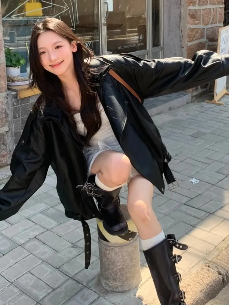 β‘Quick viewRetro American Sle Women's PU Leather Jaet Sweet And Spicy Biker Long Sve Autumn Winter New Faion Ele Top578.22 UAHHot
