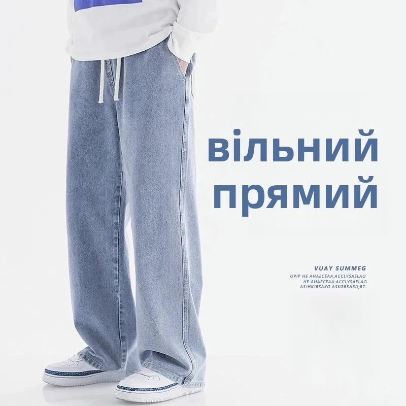 β‘Quick viewLight Wash Men's Drawstring Jeans Loose Straight Leg Floor-Length Trendy Casual Wide Leg Long Trousers Comfortable Fit683.63 UAHHotβ β β β β β 4.9