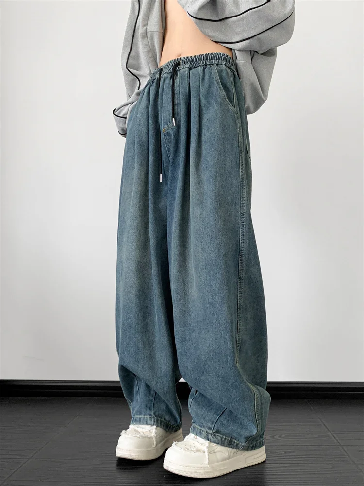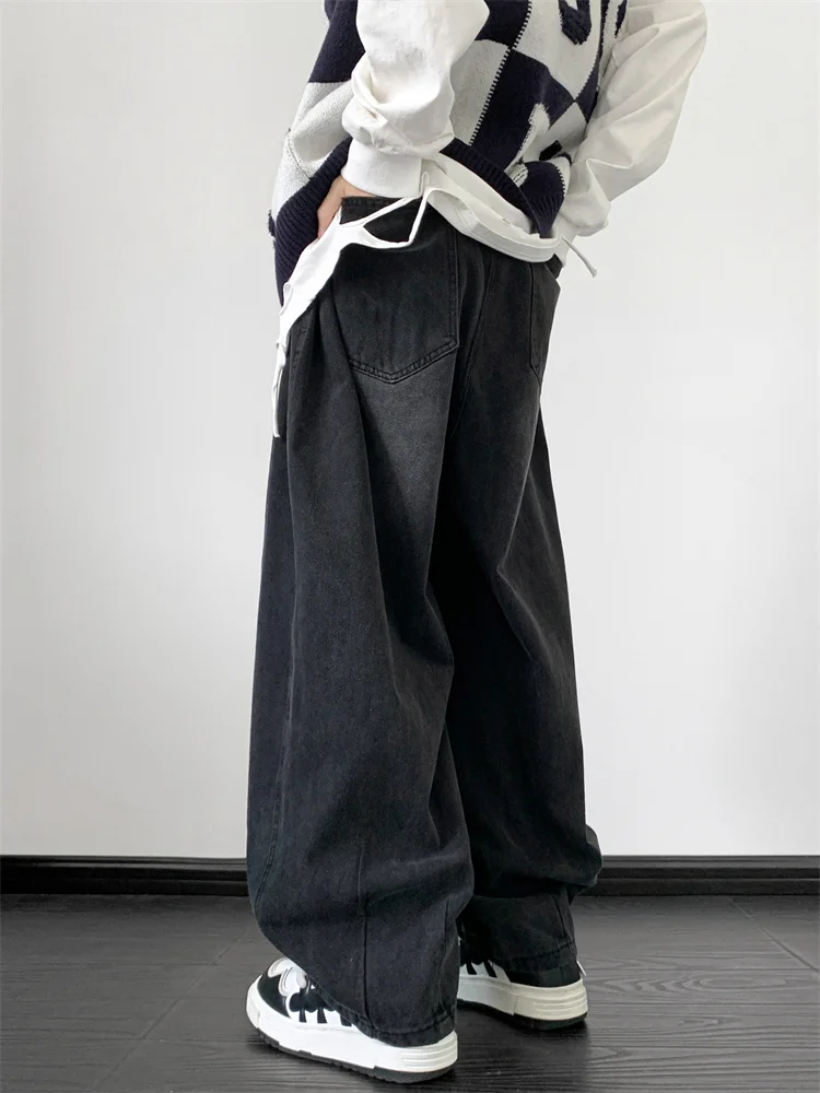 β‘Quick viewMen's New Fashion Solid Color Drape Jeans Loose Straight Vintage High Street Hip-hop Y2K Casual Daily Dragging Wide-leg Pants599.42 UAHHot