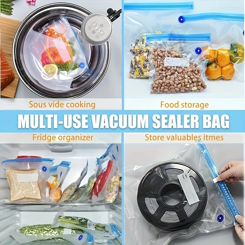 ↑Reusable Vacuum Storage Bags Kit – Includes 4 Sizes Bags, Hand Pump and Sealing Clips for Extending Freshness of Food in Freezer - TopDealBox