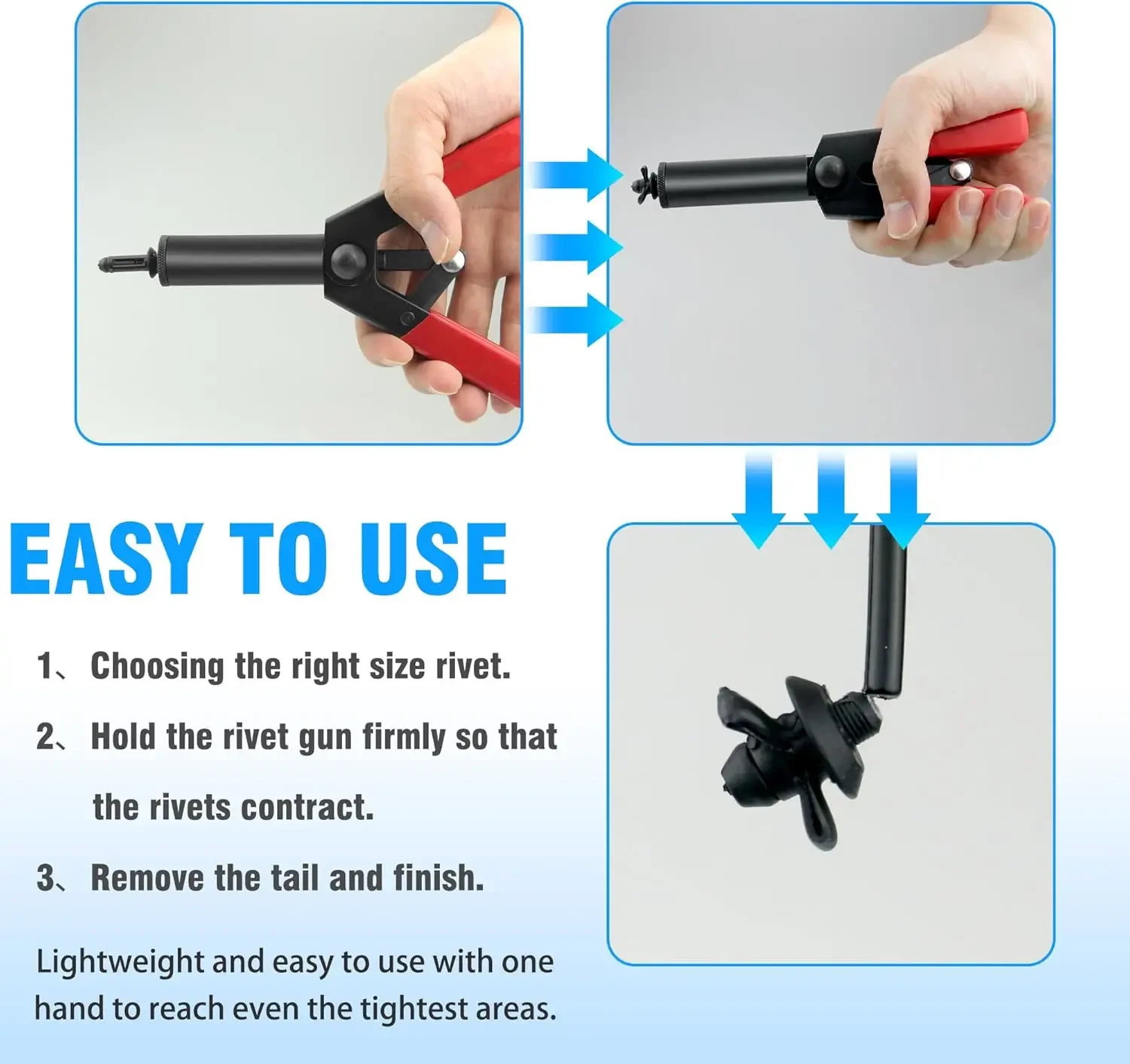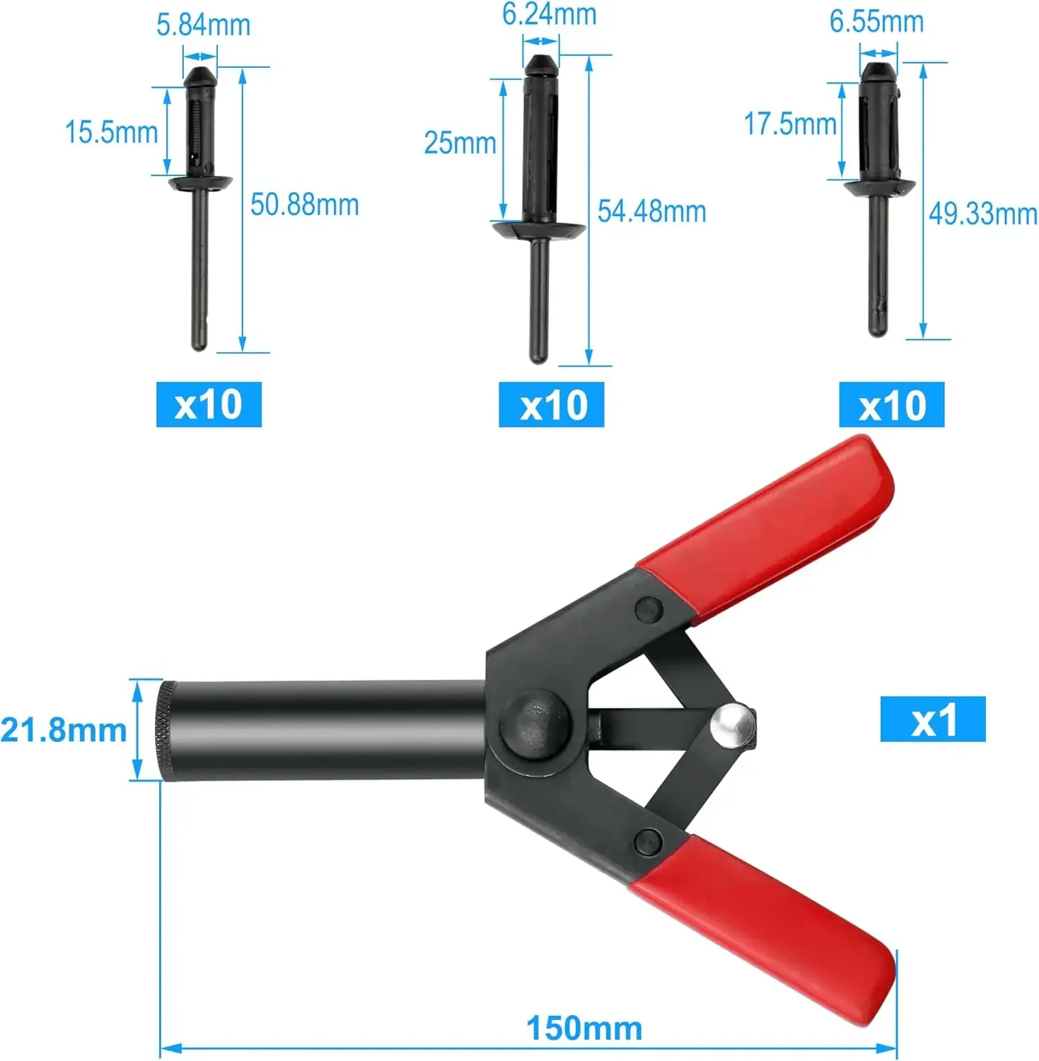 Rivet Gun Set with 3 Sizes Nylon Blind Rivets, 30 Pieces, Hand Riveter Suitable for Automotive and More - TopDealBox