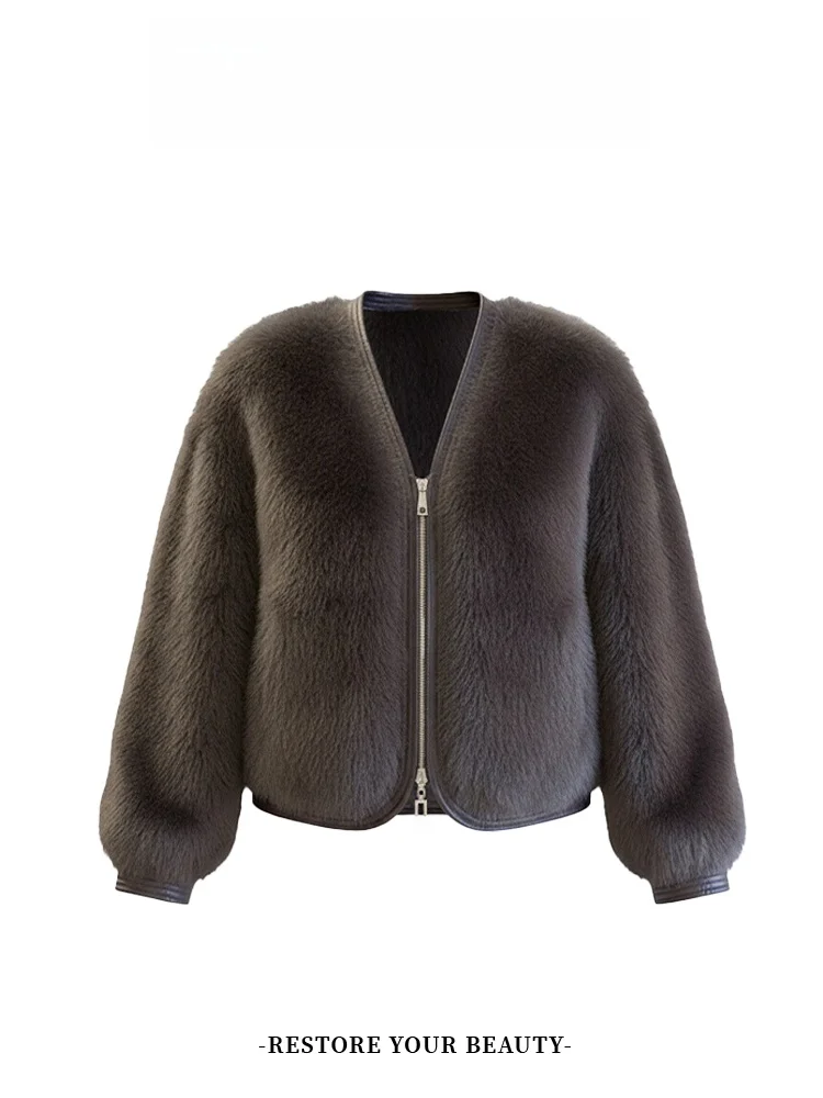 ↑Sli Warmth Women's Faux Fur Jaet Inteated Leather ular Trendy Outerwear Simptic Loose Fit Long Sve Zipper - TopDealBox