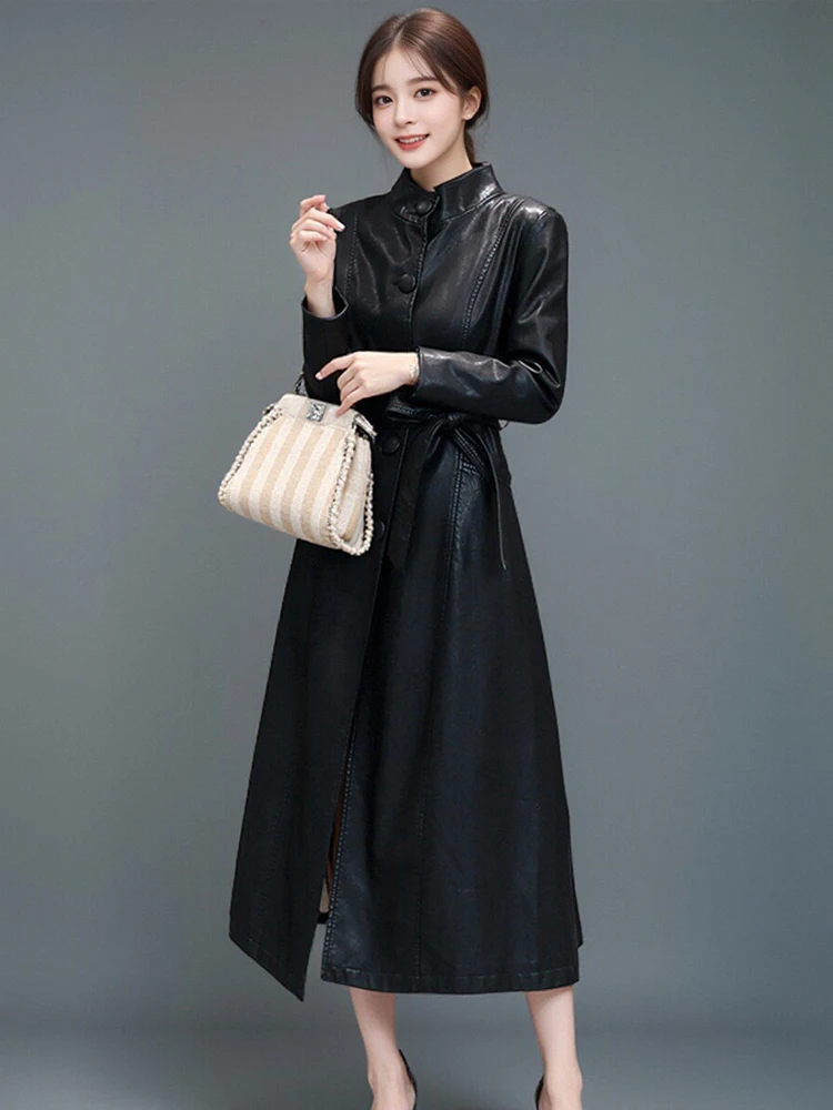 β‘Quick viewBla eep Leather Jaet Women's Mid-Length Coat 2025 Spring Autumn New Sle Cool Windproof Long Sve Collar1837.84 UAHHotβ β β β β β 4.7