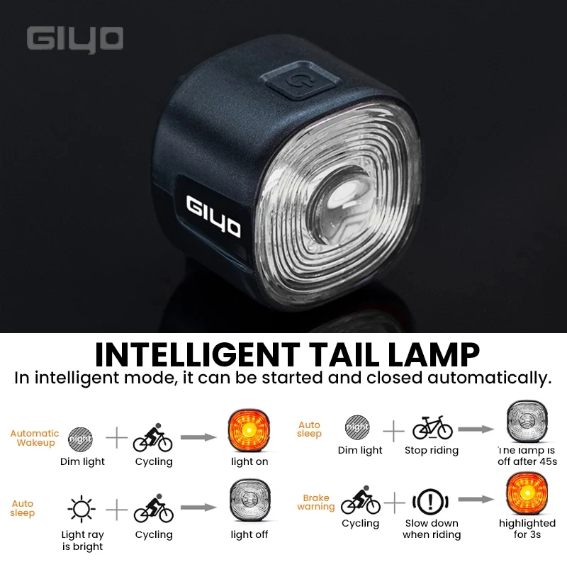 β†‘β€ŒSmart Brake Tail Light for MTB/Road Bike Auto Sensing IPX6 Waterproof LED Rear Lamp with RGB Light - TopDealBox