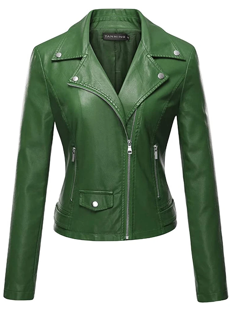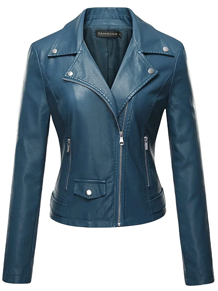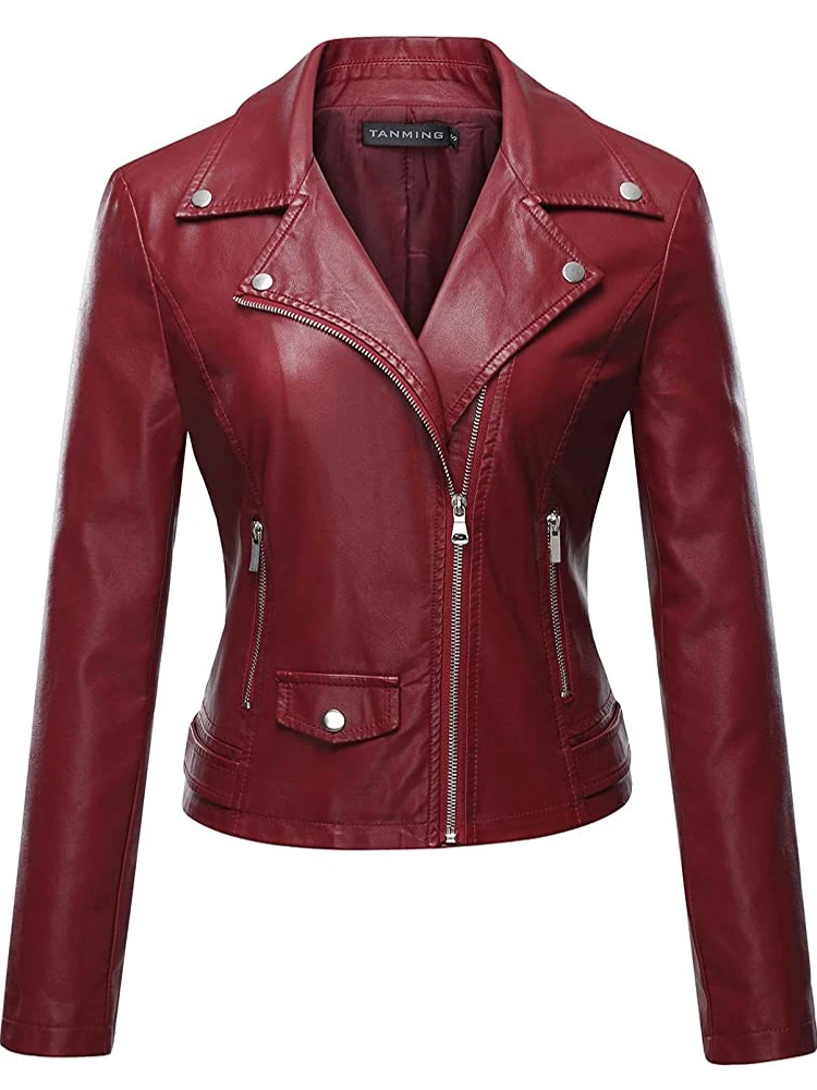↑Spring and Autumn Pu Material Leather Jacket Fashionable Women's Leather Jacket Leather Jacket - TopDealBox