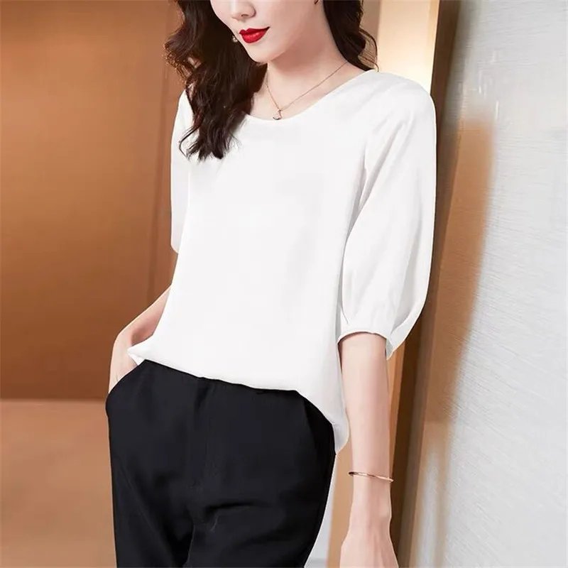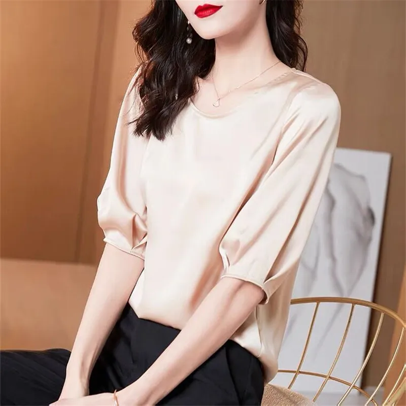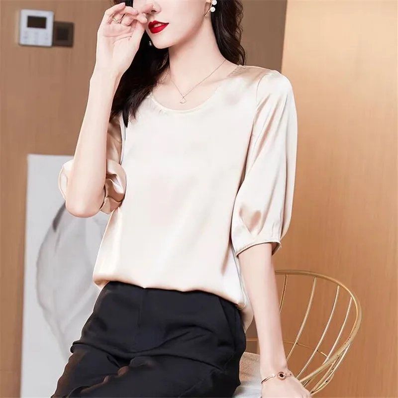 ↑Spring Woman lantern half sleeve ice silk tops Office women Acetate satin blouse Summer retro style stylish bright silk shirts - TopDealBox