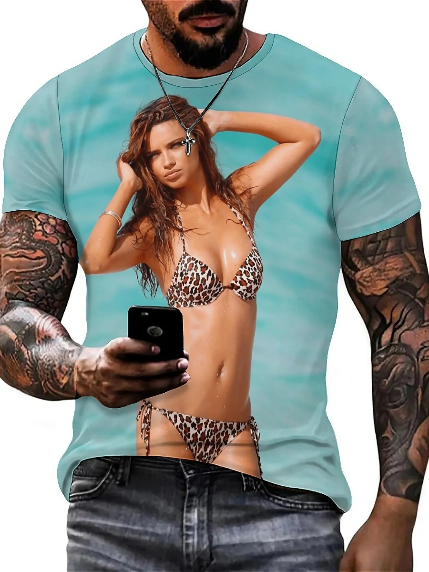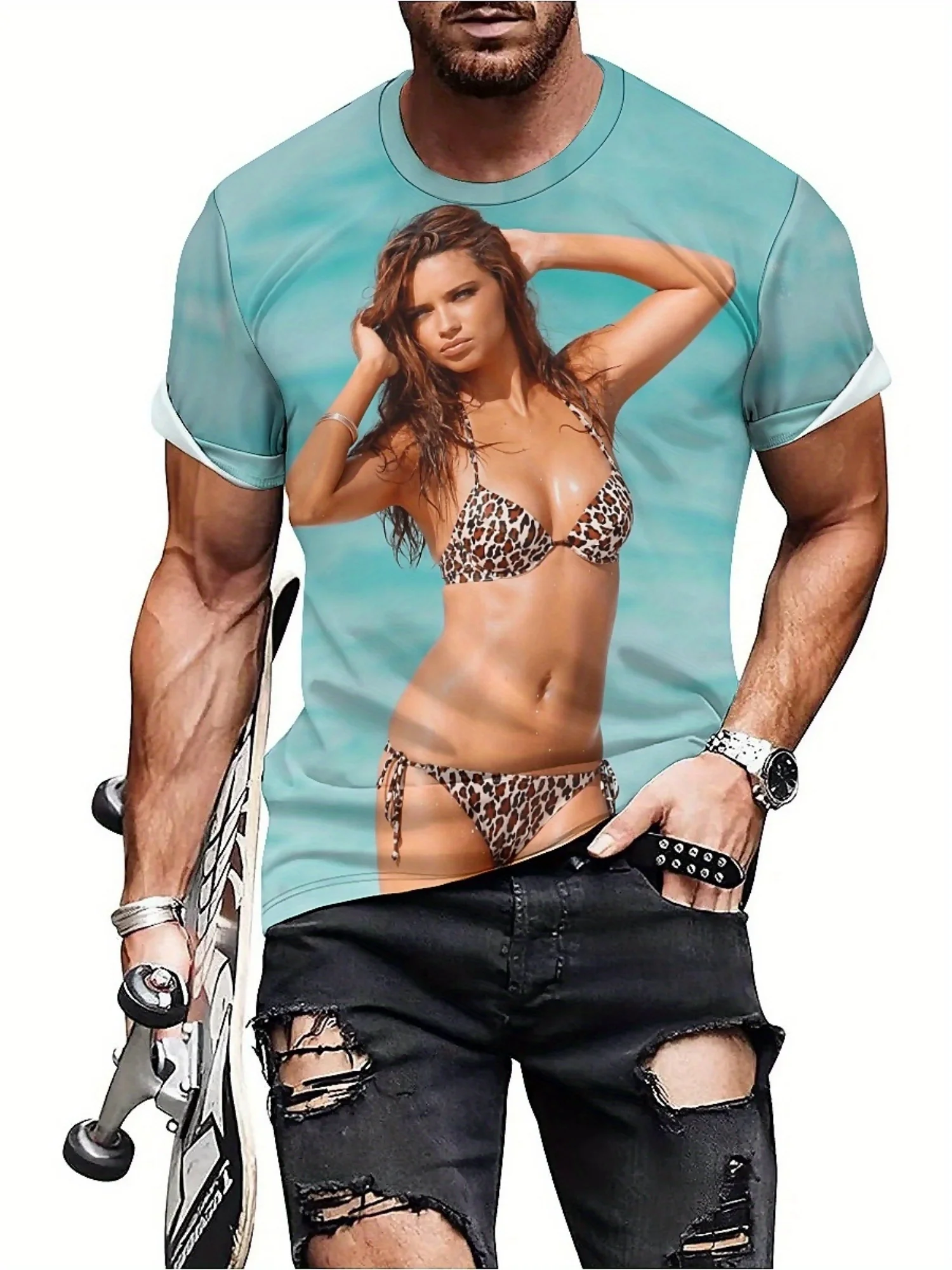 β‘Quick viewVibrant 3D Bikini Beauty Print T-Shirt - Soft Polyester, Short Sleeve, Crew Neck, Hip-Hop Rock Style for Men, All-Season Comfort225.72 UAHHotβ β β β β 5.0