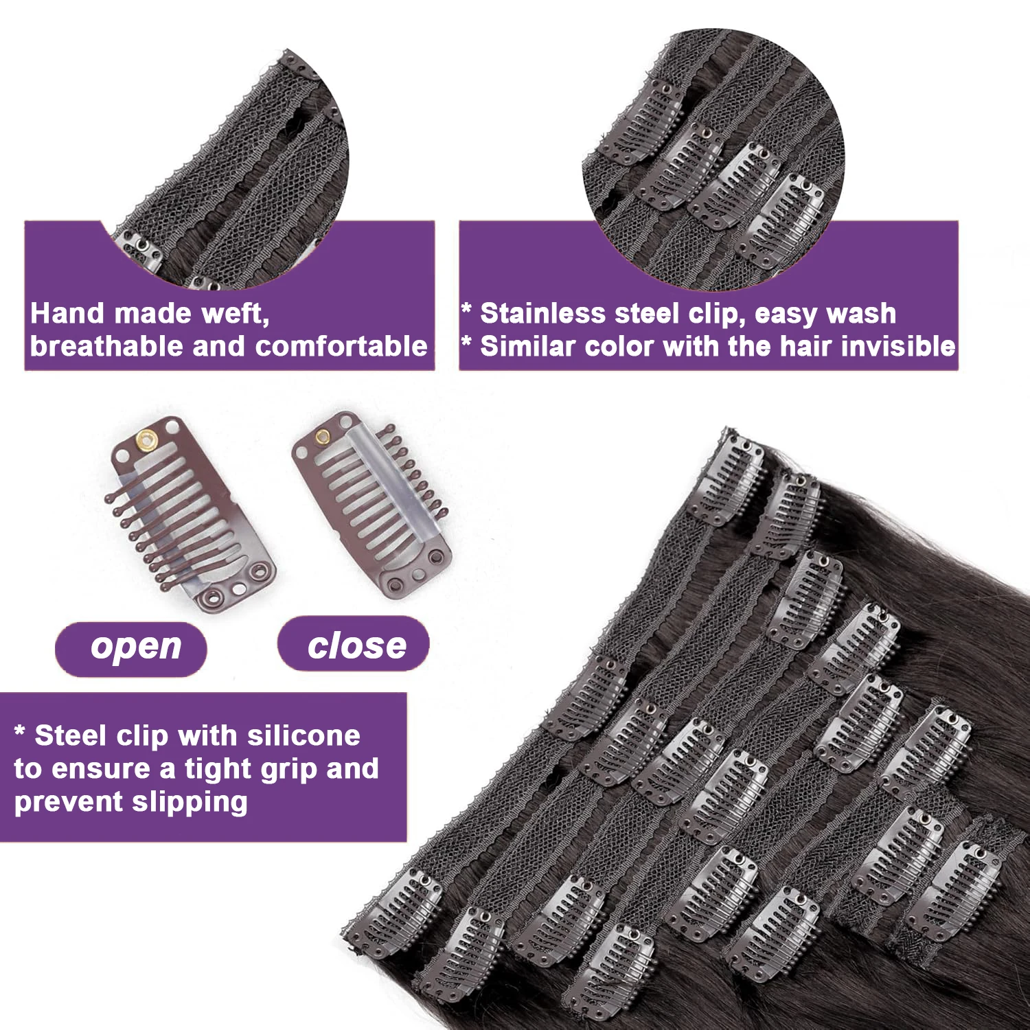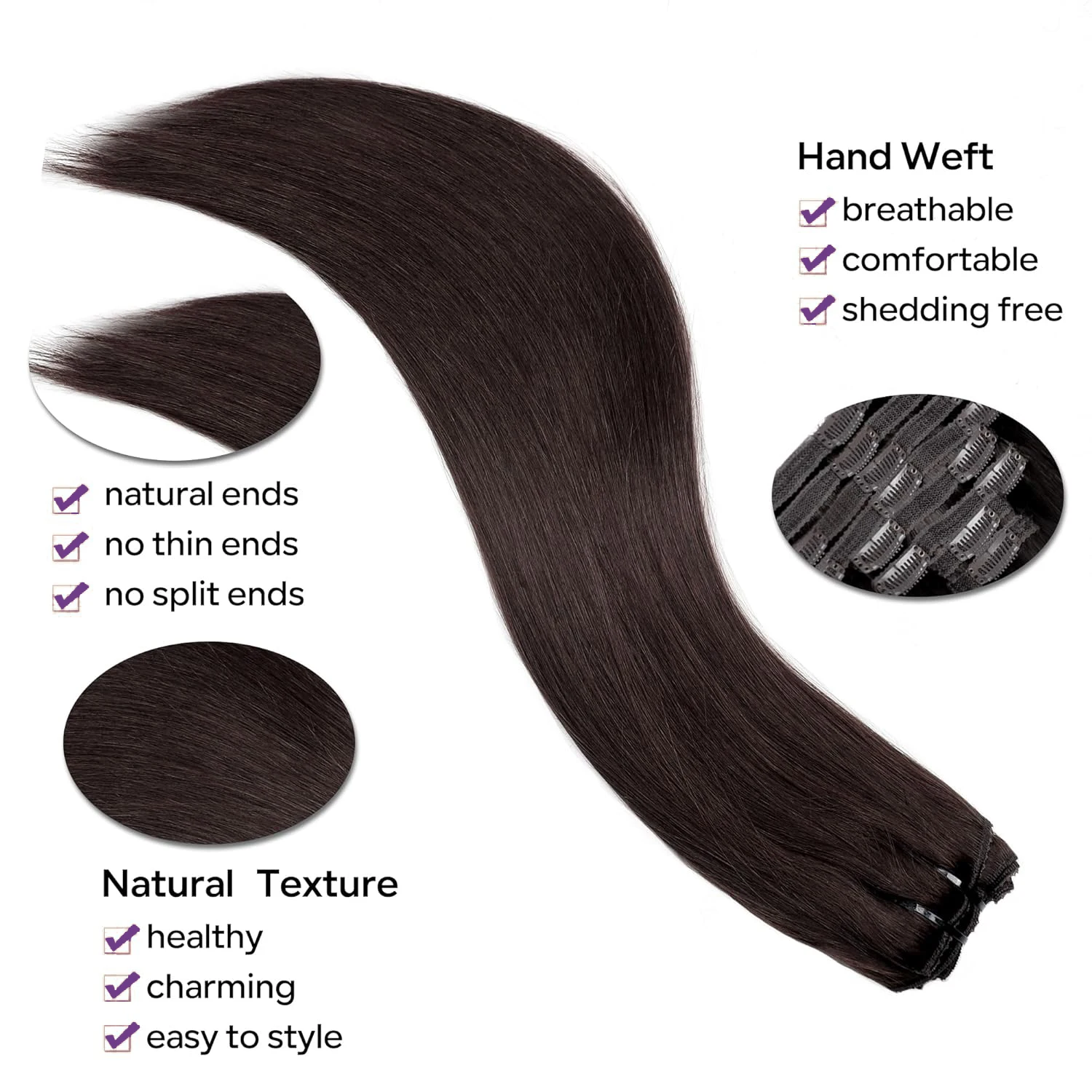 ↑Straight Clip In Hair Extensions Real Human Hair 8Pcs Clip In Dark Brown Human Hair Extensions With 18 Clips 120G/Pack Clip Ins - TopDealBox
