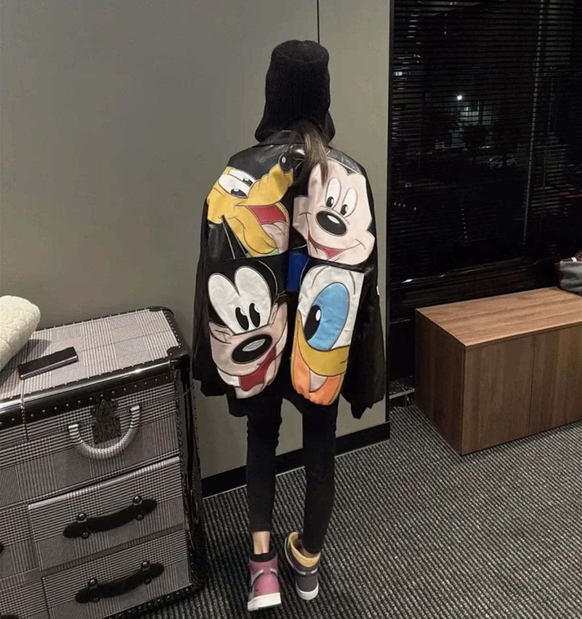 β‘Quick viewRetro American Streetwear Bla Leather Jaet Women's Spring Autumn Loose Versatile PU Biker Sle Top Commute Faion682.11 UAHHot