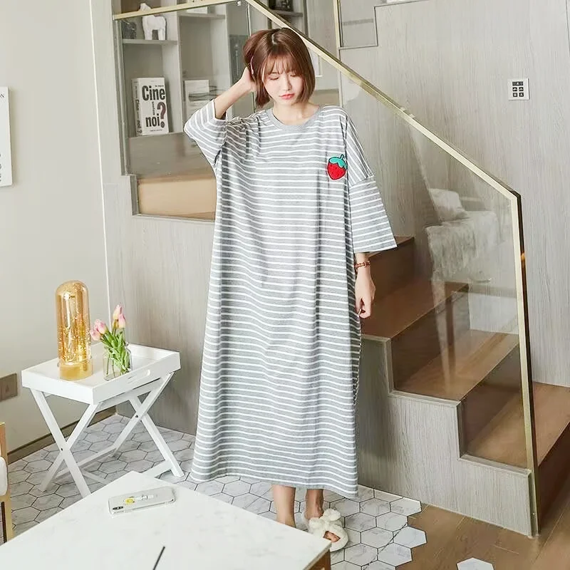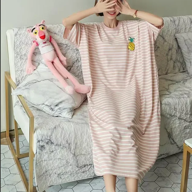 ↑Summer Spwear Women's Mid-Length ort-Sve Striped Home Dr Materni Comfortable Breathable Sweet Sle Printed Nigh... - TopDealBox