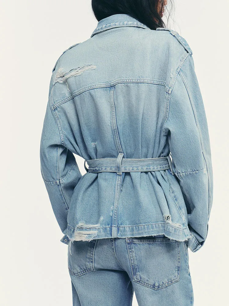 ↑Sweet Faionable Denim Jaet with Belt And ket Design New Arrival Women's Clothing Ethnic Stage Costume Autumn 2025 - TopDealBox