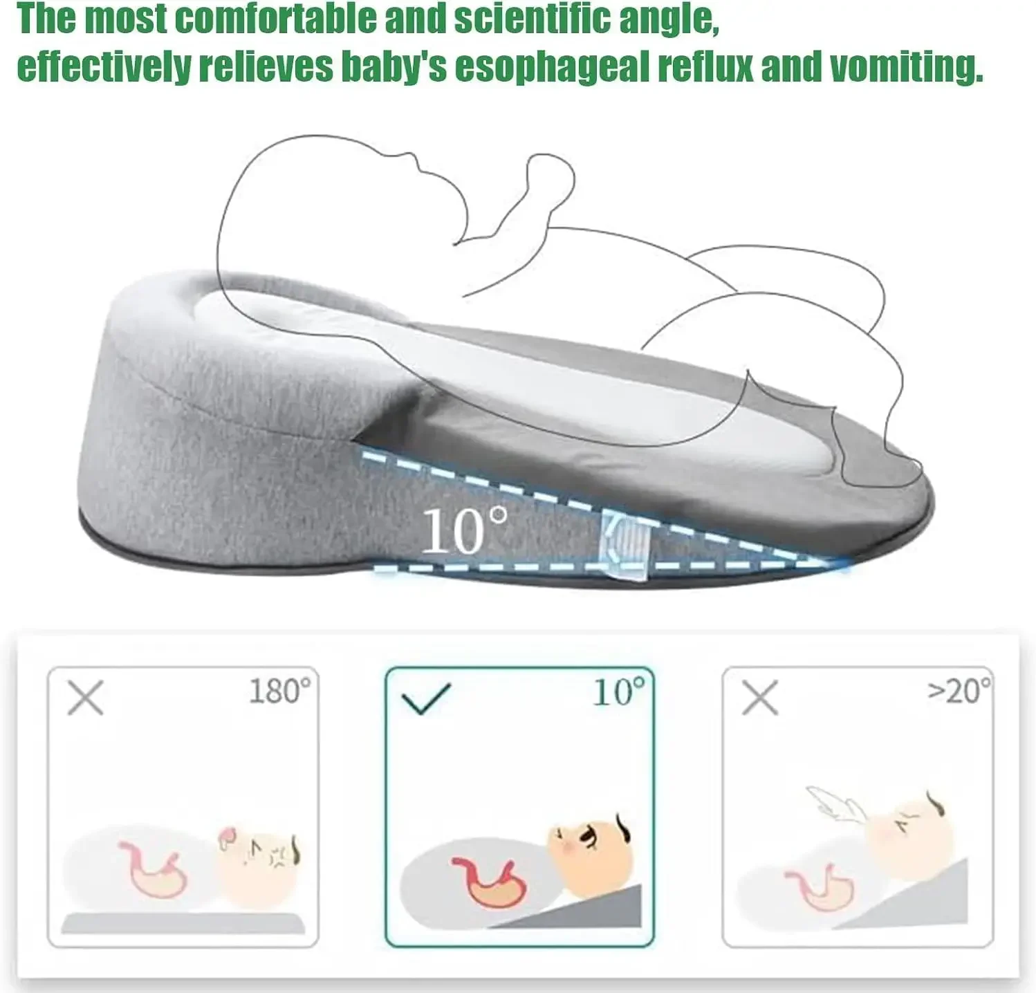 ↑TINSOL New Baby Wedge Pillow for Newborns, Infant Feeding Support Nursing Anti-Reflux Pillow Reduces Spit-Up with Safety Straps - TopDealBox