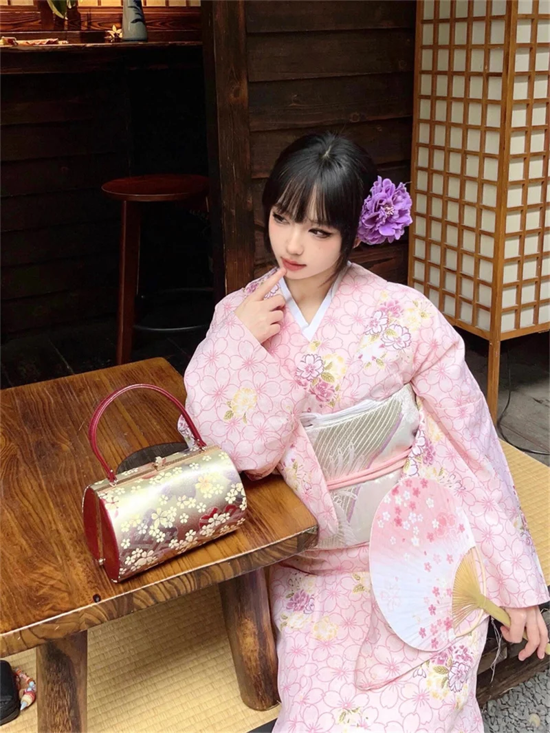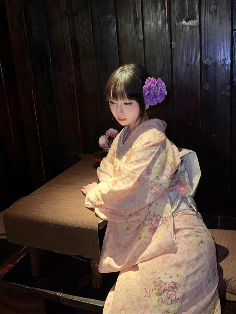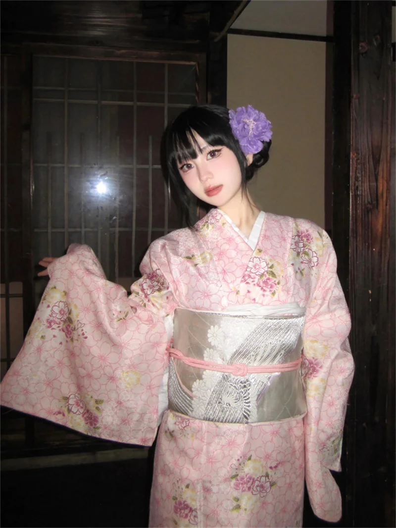 ↑Traditional Japanese Kimono Sle Batobe Pink Photoaphy Costume for Girls Retro Ele Formal Wear Polyester Fabric - TopDealBox