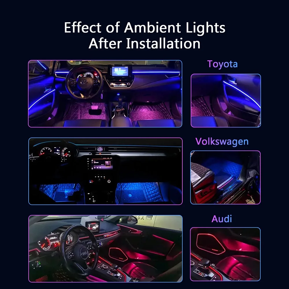 ↑Universal Car Ambient Light Kit With Wireless APP Control 256 RGB Dream Color and 55 Preset Modes LED Neon Footlight Accessories - TopDealBox