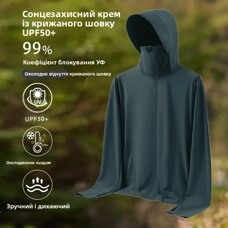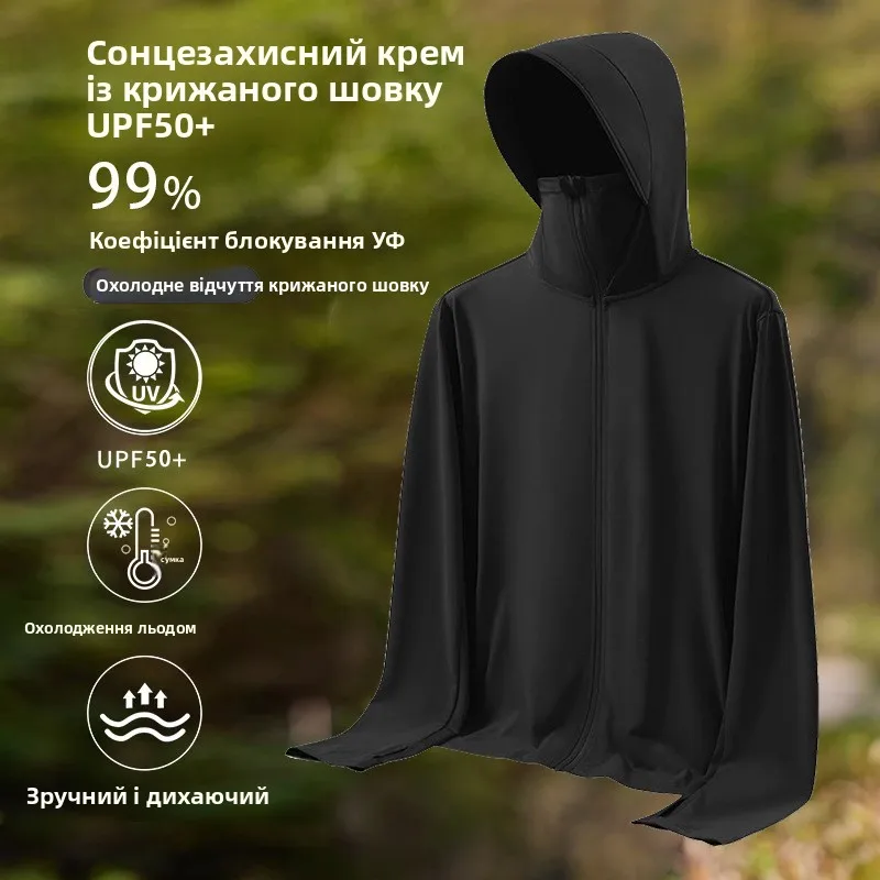 ↑UPF50 UV Protection Ice Silk Cool Feeling Sun Protection Clothing Lightweight Breathable Fiing Jaet Outdoor Sports irt - TopDealBox