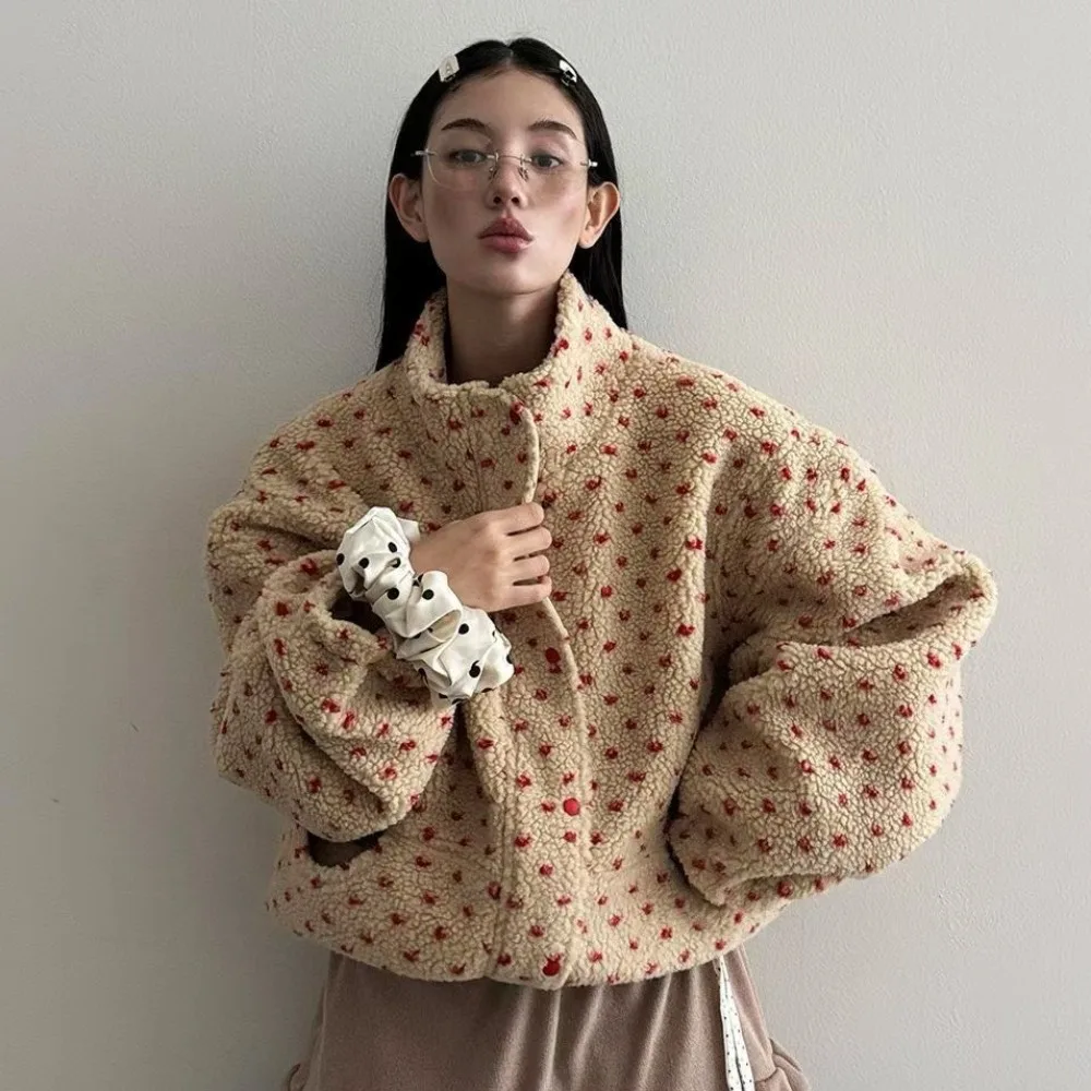 ↑Warm Lamb Fur Jaet with Polka Dot Heart Collar Women's Cotton Coat Plu Outerwear Sli Winter Faion Ladies' Clothing - TopDealBox