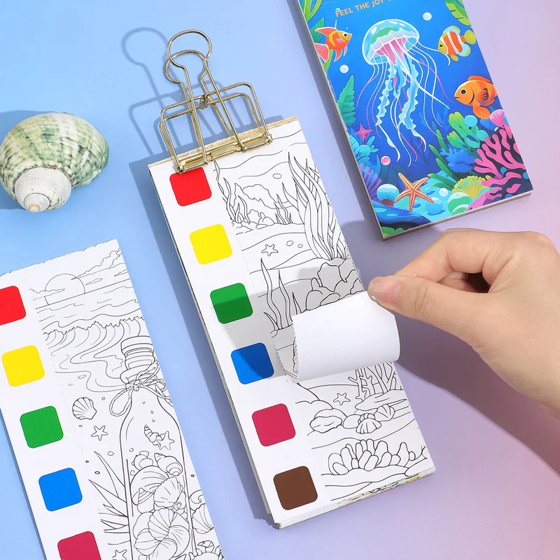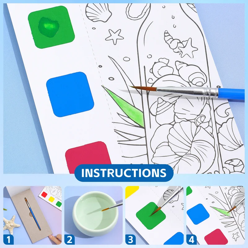 ↑Watercolor Marine Life Coloring Book 12 Sheets With Marine Animals And Plants Designs For Stress Relief Fun Stationery Supply - TopDealBox