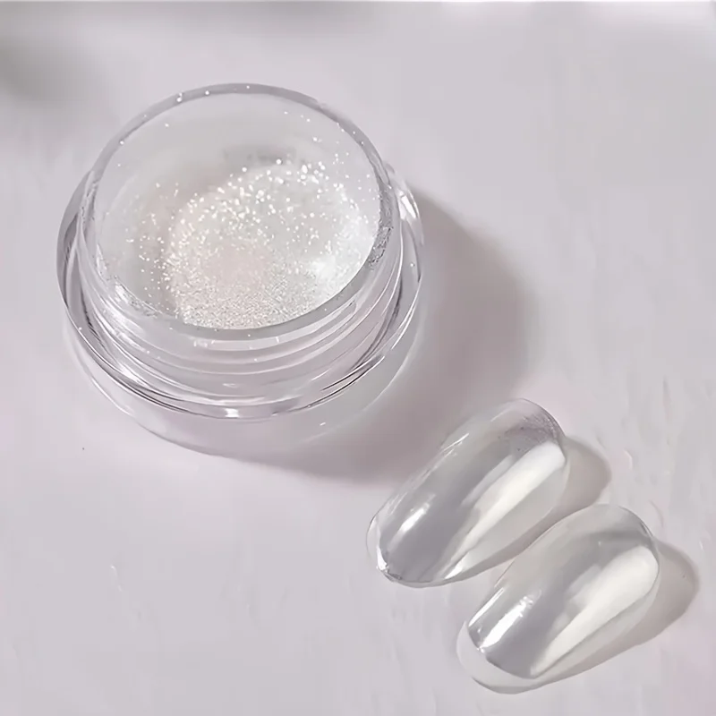 ↑White pearl chrome nail powder - glazed donut effect, rectangular, preservative-free mirror moonlight powder, suitable for nail - TopDealBox