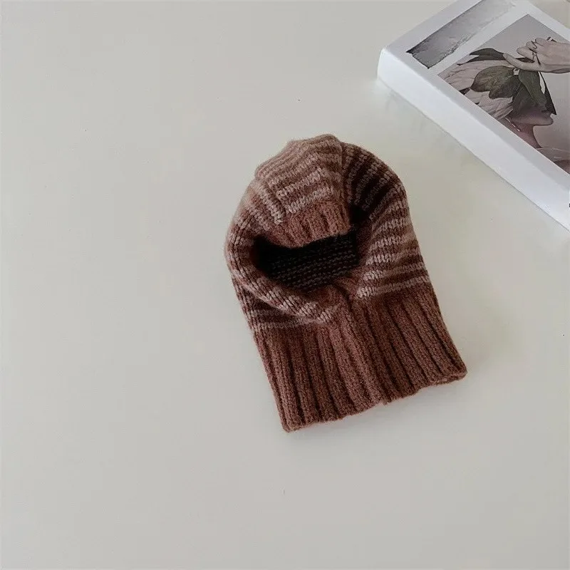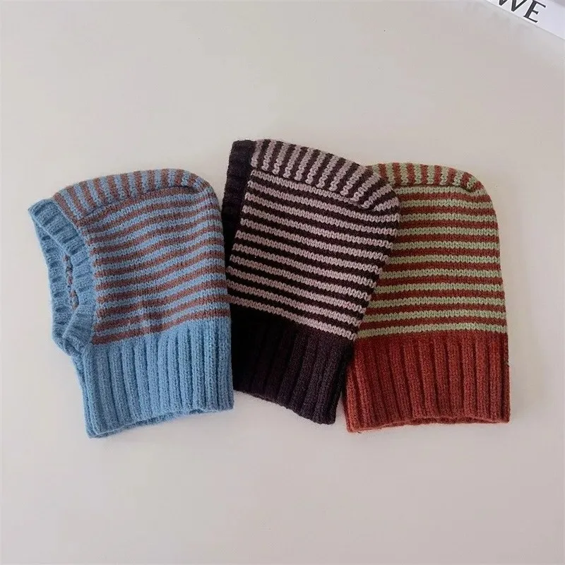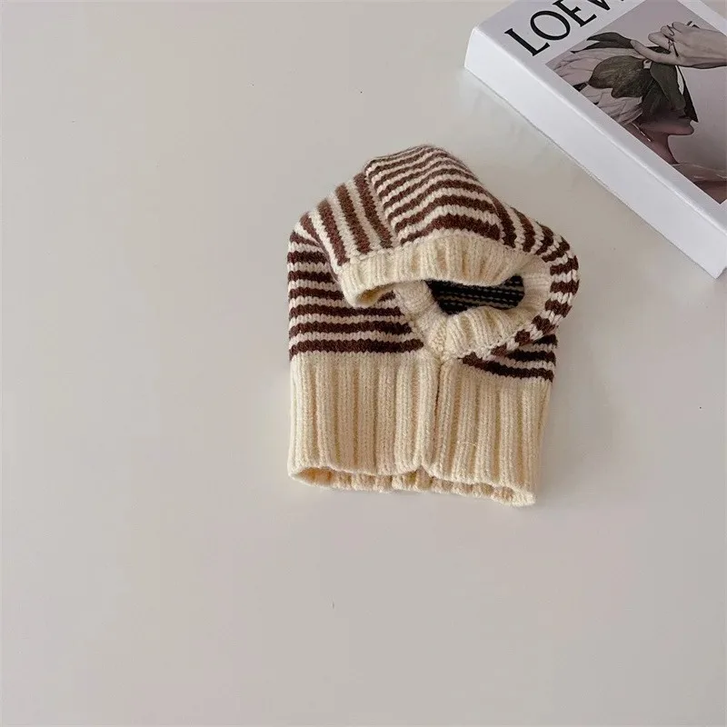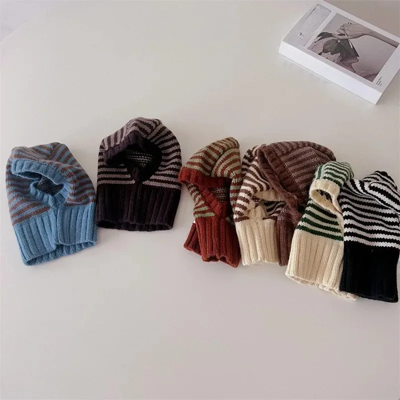 ↑Homefish Winter Korean Fashion Children Baby Knit Hooded Scarf Caps Warm Stripe One Piece Hat Kids Accessories - TopDealBox