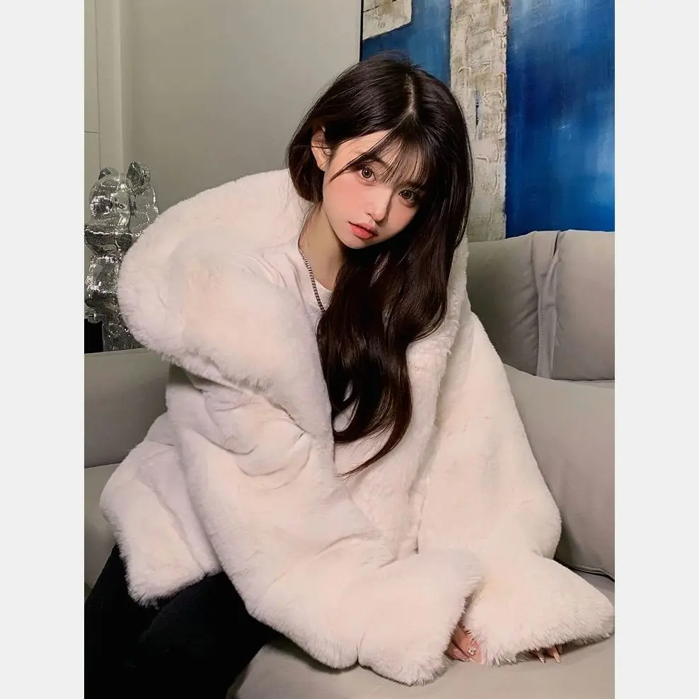 ↑Winter Thiened Medium Length Fur Coat Women's 2025 New Sle Eco-friendly Rabbit Fur Plu Jaet Ladies' Outerwear - TopDealBox