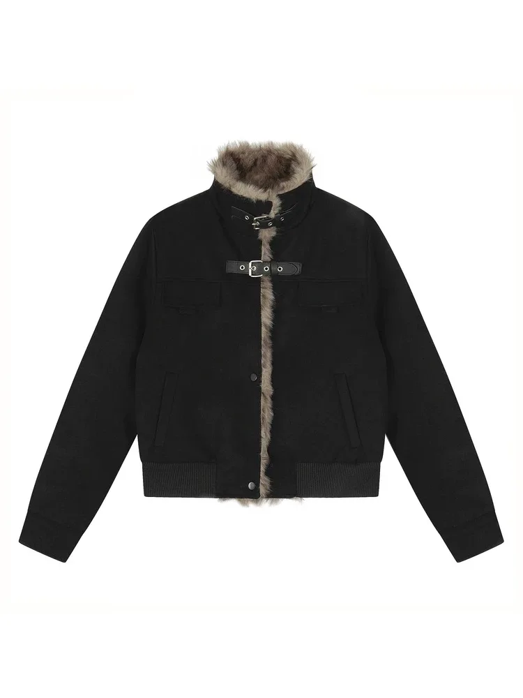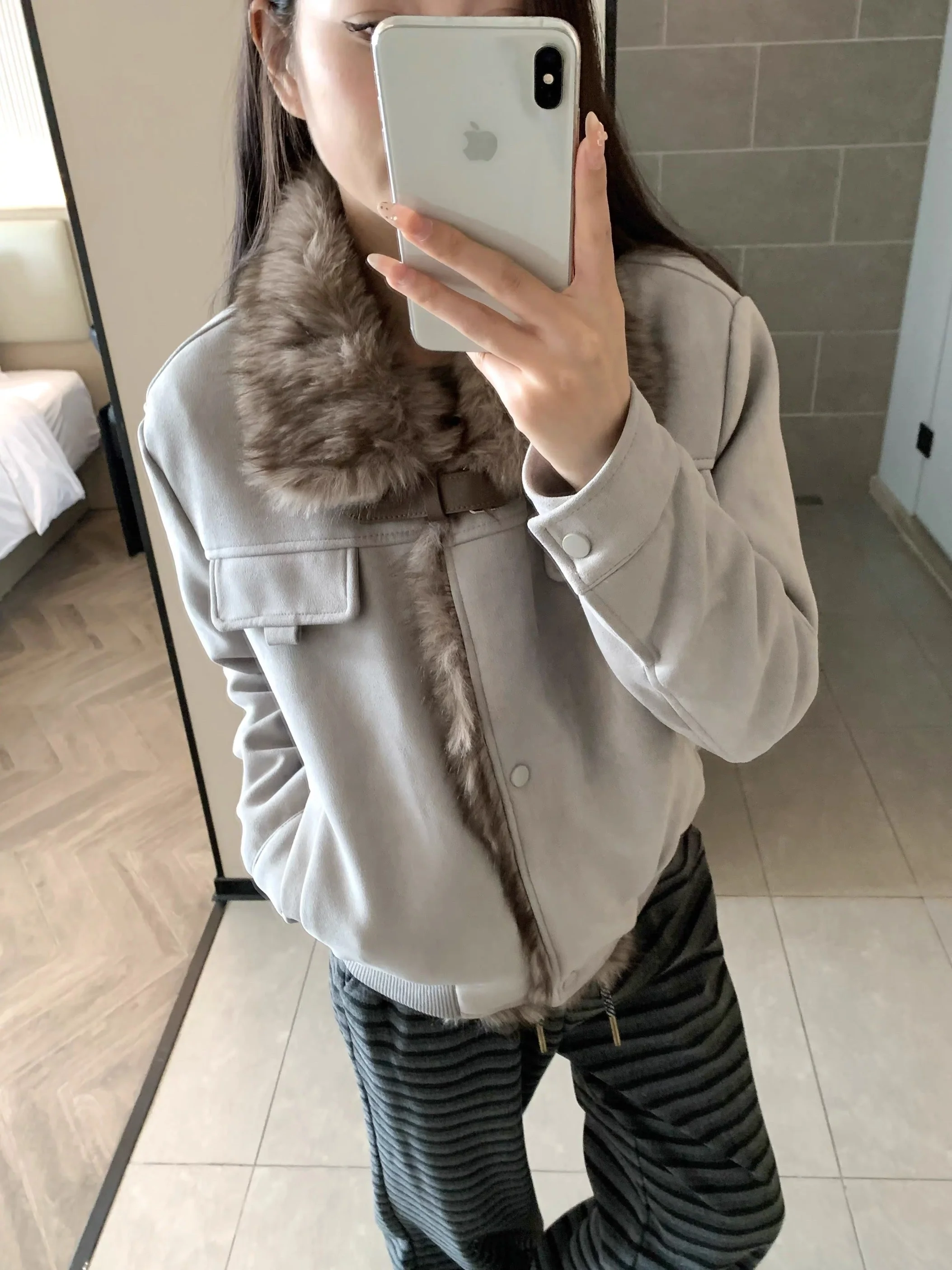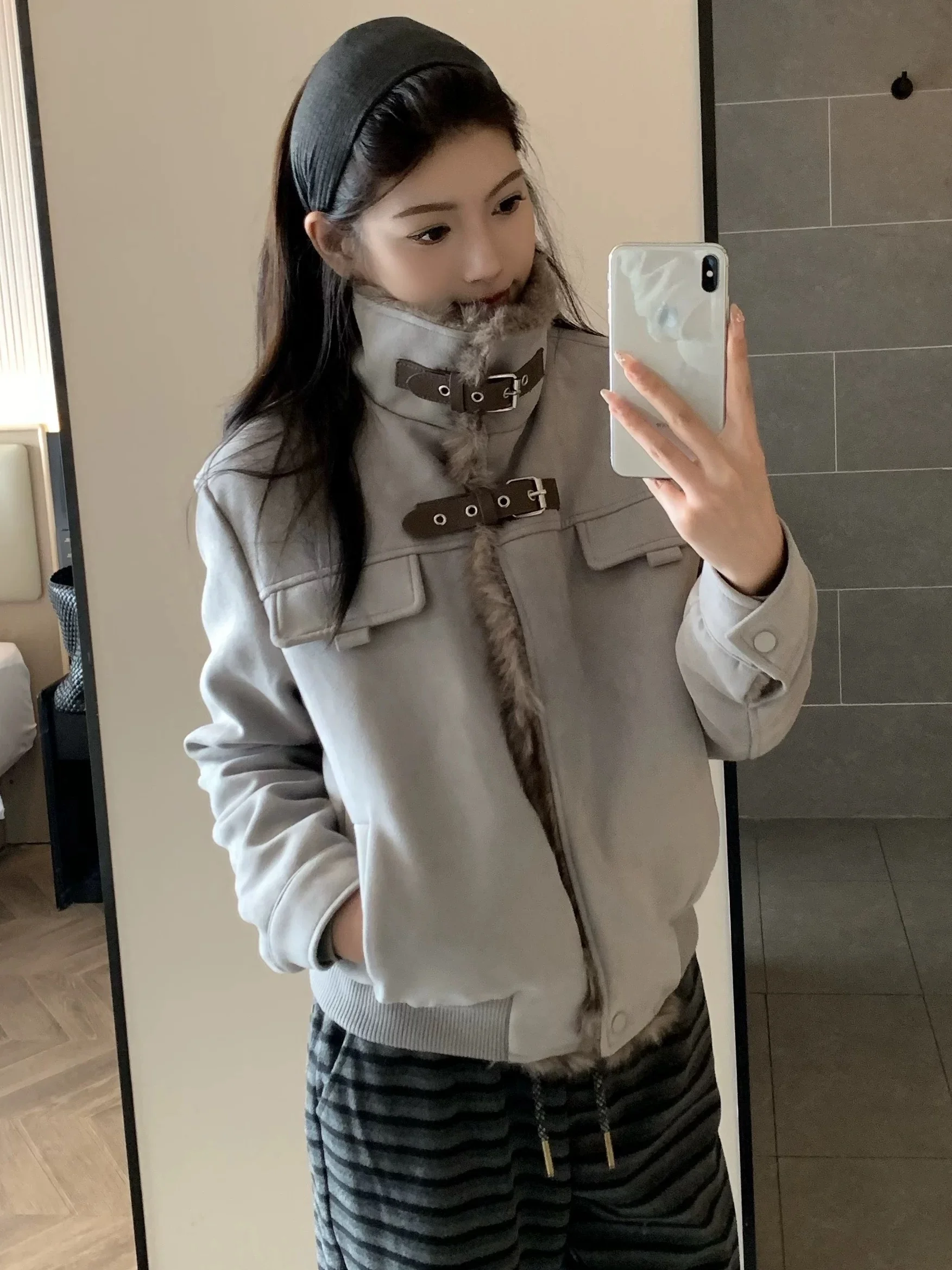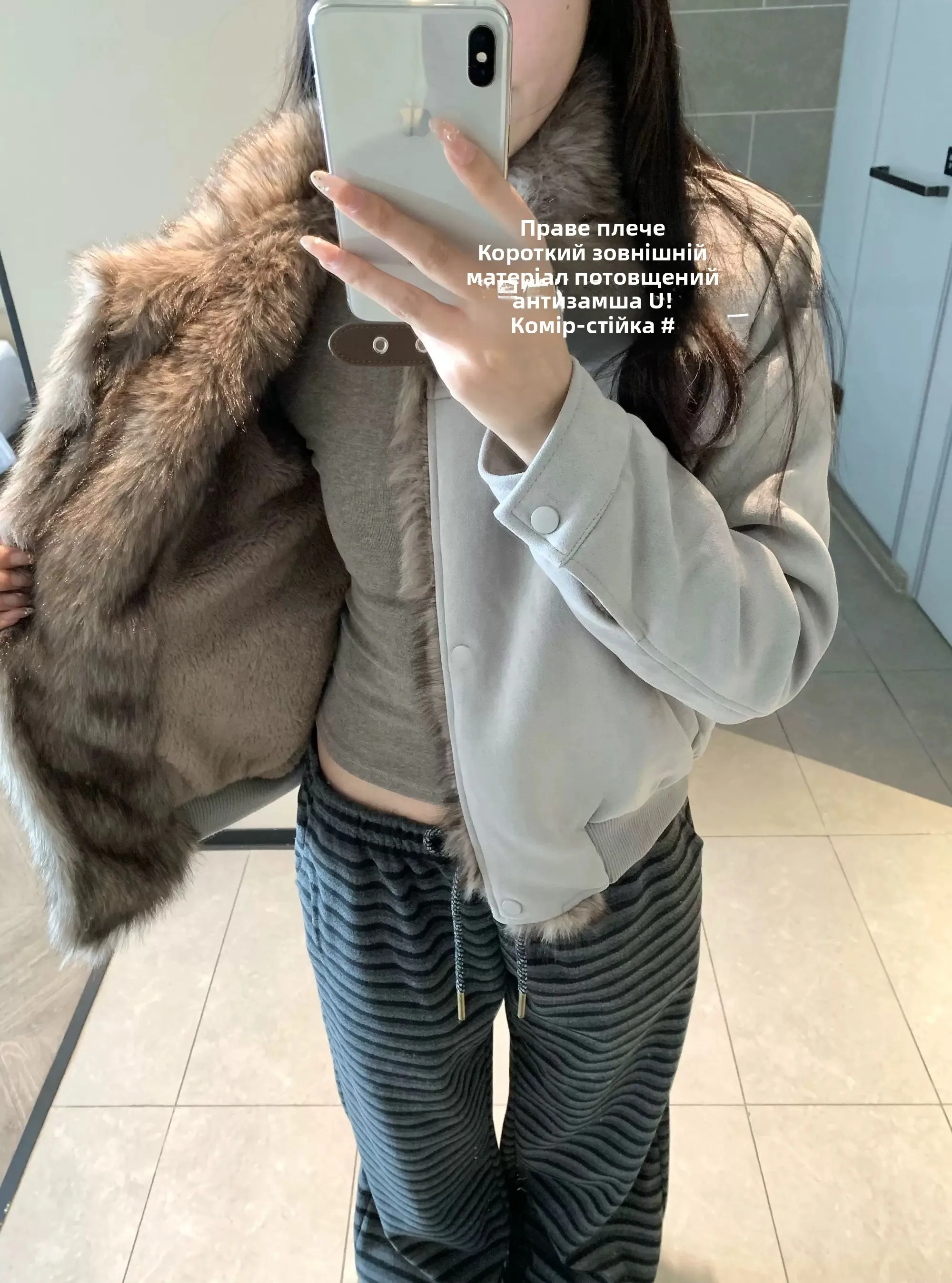 ↑Winter Thiened Suede Biker Jaet Women's Stand Collar Coat Couples Outerwear Fce Lined Fur Trimmed Casual Commute Sle - TopDealBox