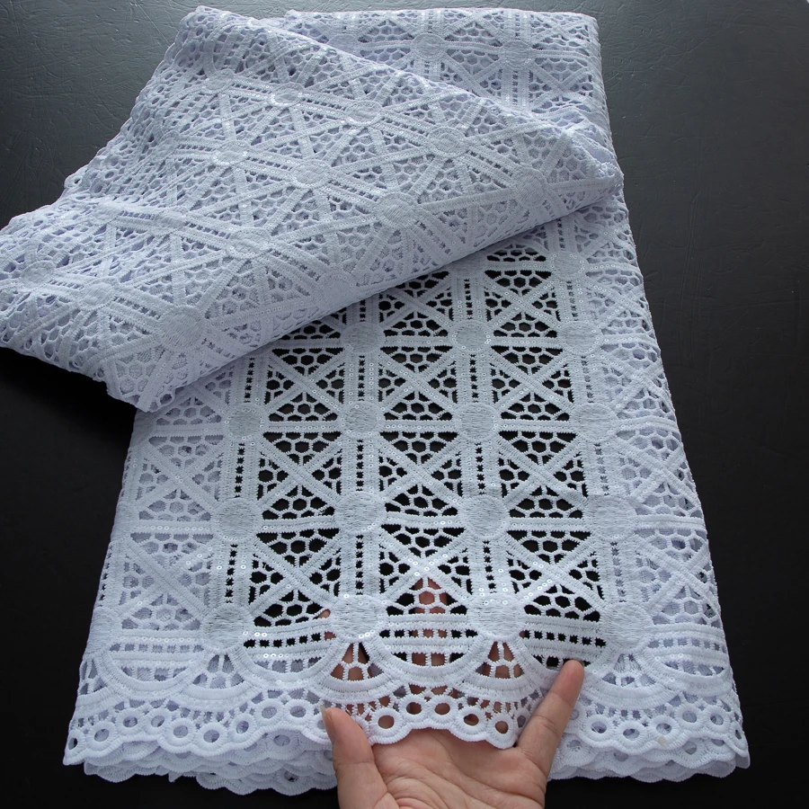 ↑Withe African Chiffon Cord Guipure Lace Fabric 2025 High Quality 5Yards Water Soluble French Lace Fabric For Woman Party Dresses - TopDealBox